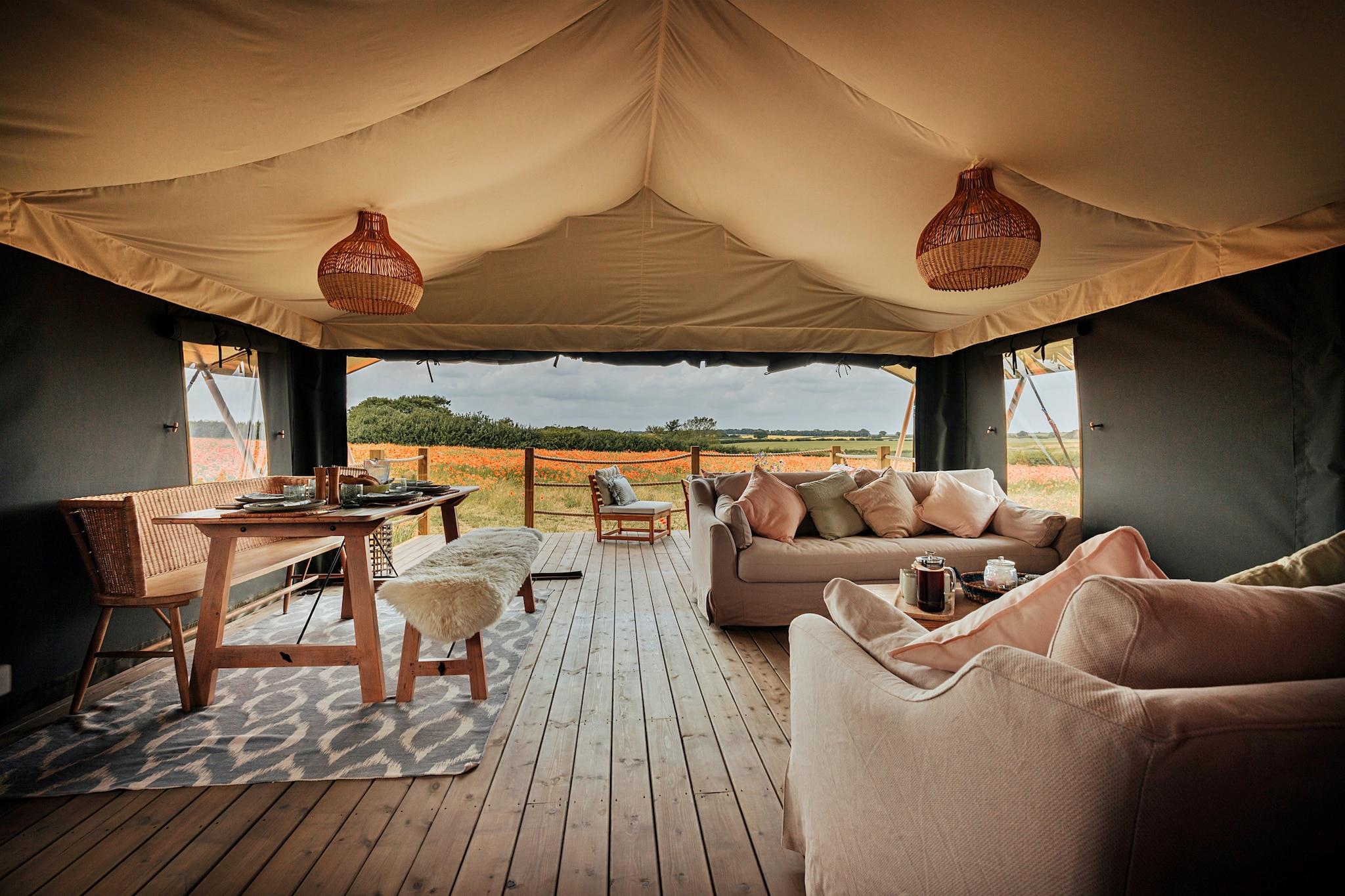Safaritelt i Stiffkey Valley med bålplads