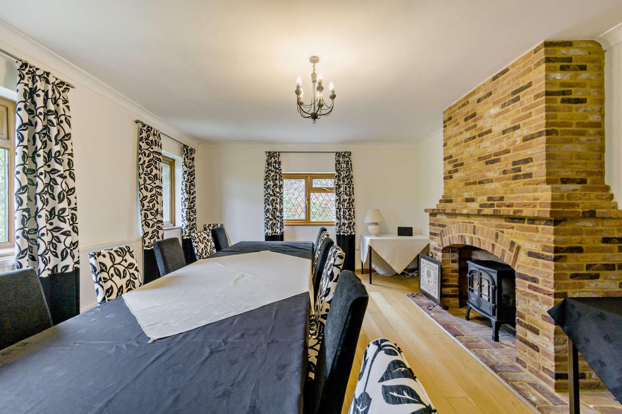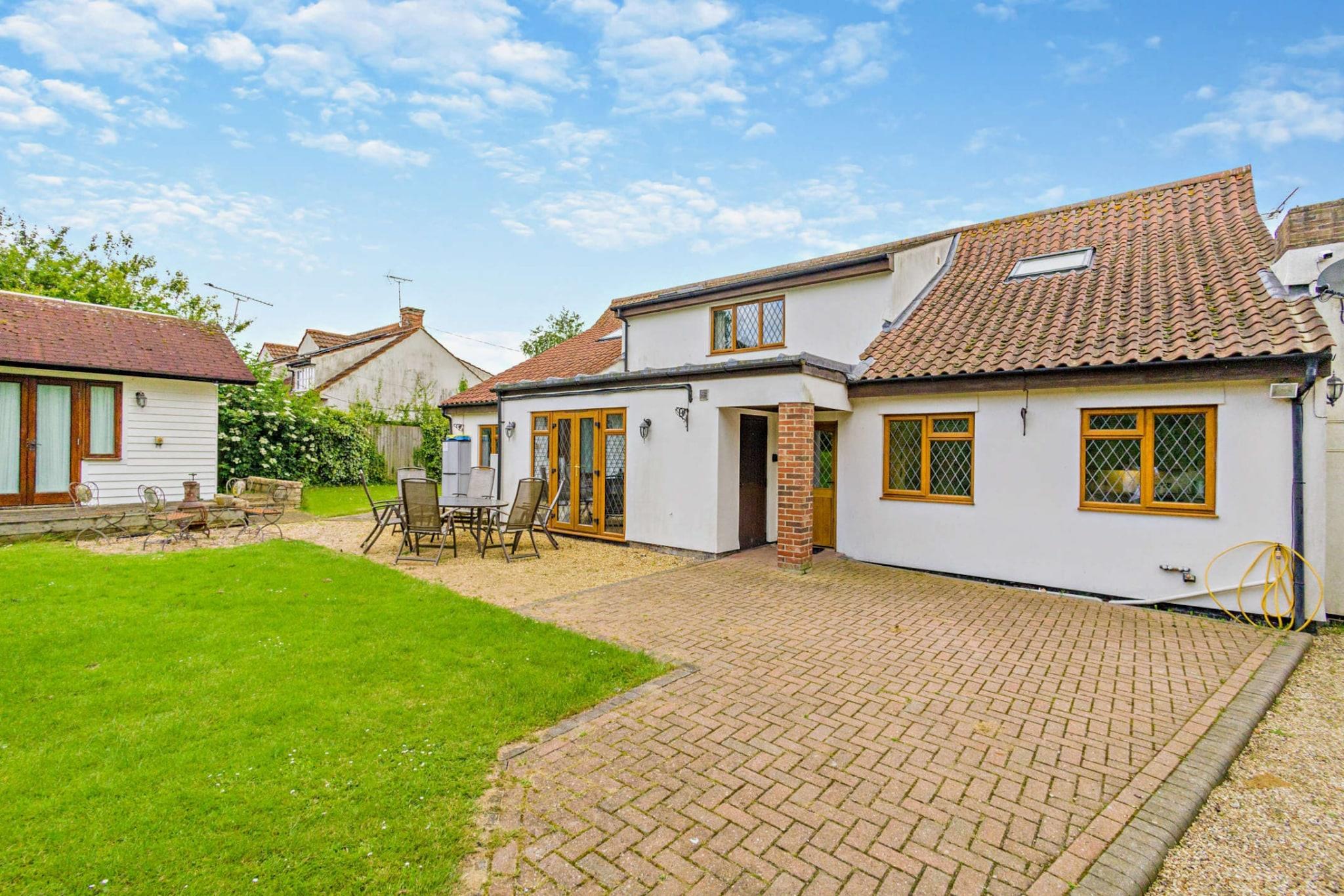Denne fantastiske tilflugtssted på landet tilbyder indkvartering for op til 12 gæster, med et rummeligt hovedhus med fem soveværelser og et selvstændigt anneks med et soveværelse, perfekt til store familier eller særlige sammenkomster. Hovedhuset kan prale af en varm, indbydende atmosfære med synlige træbjælker, et spillelokale og et stilfuldt spiseområde med en pejs. Det veludstyrede køkken indeholder moderne hvidevarer og træbordplader til at tilberede lækre måltider. Soveværelserne inkluderer to king-size værelser (et med en-suite), to dobbeltværelser (et med en-suite), og et dobbeltværelse, plus et familiebadeværelse med bruser over badekarret. Annekset tilbyder et fredeligt tilflugtssted med et soveværelse med dobbeltseng, ensuite brusebadeværelse, lille opholdsstue og tekøkken, hvilket giver privatlivets fred for gæsterne. Beliggende i den rolige landsby Streetly End tilbyder denne ejendom det bedste af landlig charme med nem adgang til Cambridge, kun 22 km væk. Gæsterne kan nyde naturskønne vandreture, besøge traditionelle pubber på landet og udforske nærliggende landsbyer. For dem, der søger byens attraktioner, tilbyder Cambridge en rig historie, shopping, restauranter og kulturelle oplevelser, alt sammen inden for en kort køretur. Den store private have er perfekt til udendørs afslapning med en solterrasse til udendørs spisning og en stor græsplæne til forskellige aktiviteter. Der er rigelig parkering til rådighed på grusindkørslen, hvilket sikrer et gnidningsløst ophold for alle gæster. Yderligere faciliteter omfatter Wi-Fi i hovedhuset, en vaskemaskine og kæledyrsvenlig indkvartering. Den store have er ideel for børn at lege, mens voksne kan slappe af i det fredfyldte miljø. Bemærk venligst, at der ikke medfølger håndklæder, så gæster rådes til at medbringe deres egne. For bookinger eller mere information, kontakt venligst Finest Retreats.