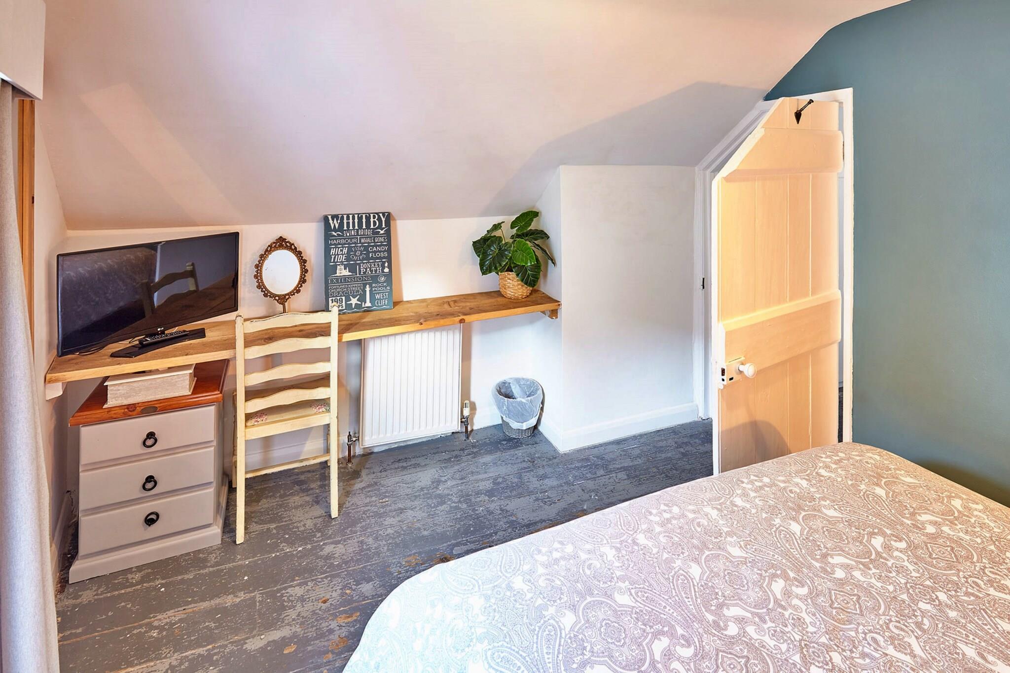 Oplev charmen ved et hyggeligt sommerhus, der fungerer som det perfekte kæledyrsvenlige tilflugtssted for både familier og par. Beliggende i den maleriske by Whitby, kan dette dejlige gamle fiskerhjem prale af en hyggelig og indbydende atmosfære, der komfortabelt kan rumme op til fire gæster. Med sin smukke blanding af rustikke funktioner og moderne bekvemmeligheder er det en ideel base for at udforske den fantastiske kystlinje og pulserende byliv. Træd indenfor for at opdage to indbydende opholdsområder, der hver har et stort smartskærm-tv – perfekt til hyggelige filmaftener efter en dag med eventyr. Stueetagen nyder godt af gulvvarme, hvilket sikrer en varm velkomst uanset årstiden. Det veludstyrede moderne køkken har en opvaskemaskine, hvilket gør måltidet til en leg. Ovenpå er der et charmerende soveværelse med dobbeltseng og et muntert dobbeltværelse sammen med et bekvemt designet badeværelse komplet med bruser, toilet og håndvask. Kun en kort gåtur fra byens centrum placerer denne hytte dig øjeblikke væk fra en række dejlige fiskerestauranter, skæve butikker og den fantastiske strandpromenade. For udendørsentusiaster og kæledyrsejere giver de nærliggende vandrestier langs floden Esk og gennem de naturskønne North Yorkshire Moors rigelige muligheder for eventyr med dine lodne ledsagere. Tag ud for at udforske Whitbys unikke butikker, forkæl dig selv med den lokale kultur og skab minder under årlige begivenheder som Bram Stoker International Film Festival og Whitby Goth Weekend. Husk at medbringe egne håndklæder til dit ophold.