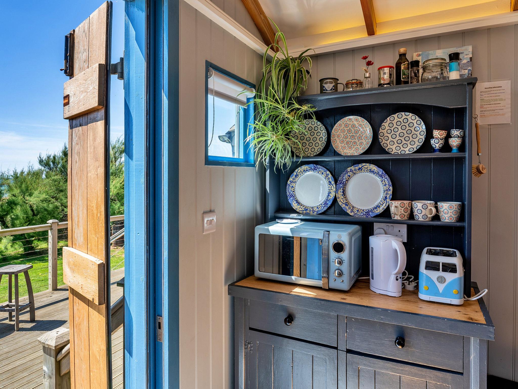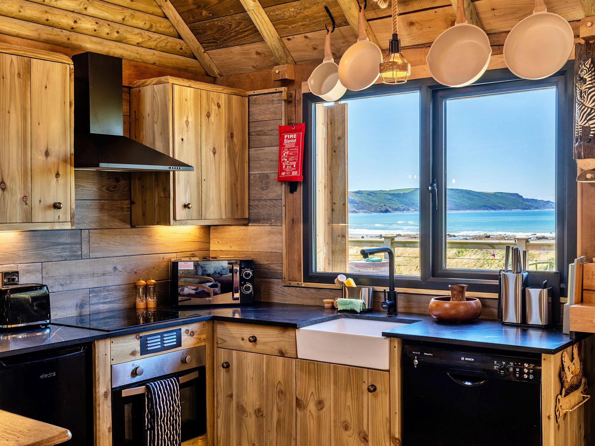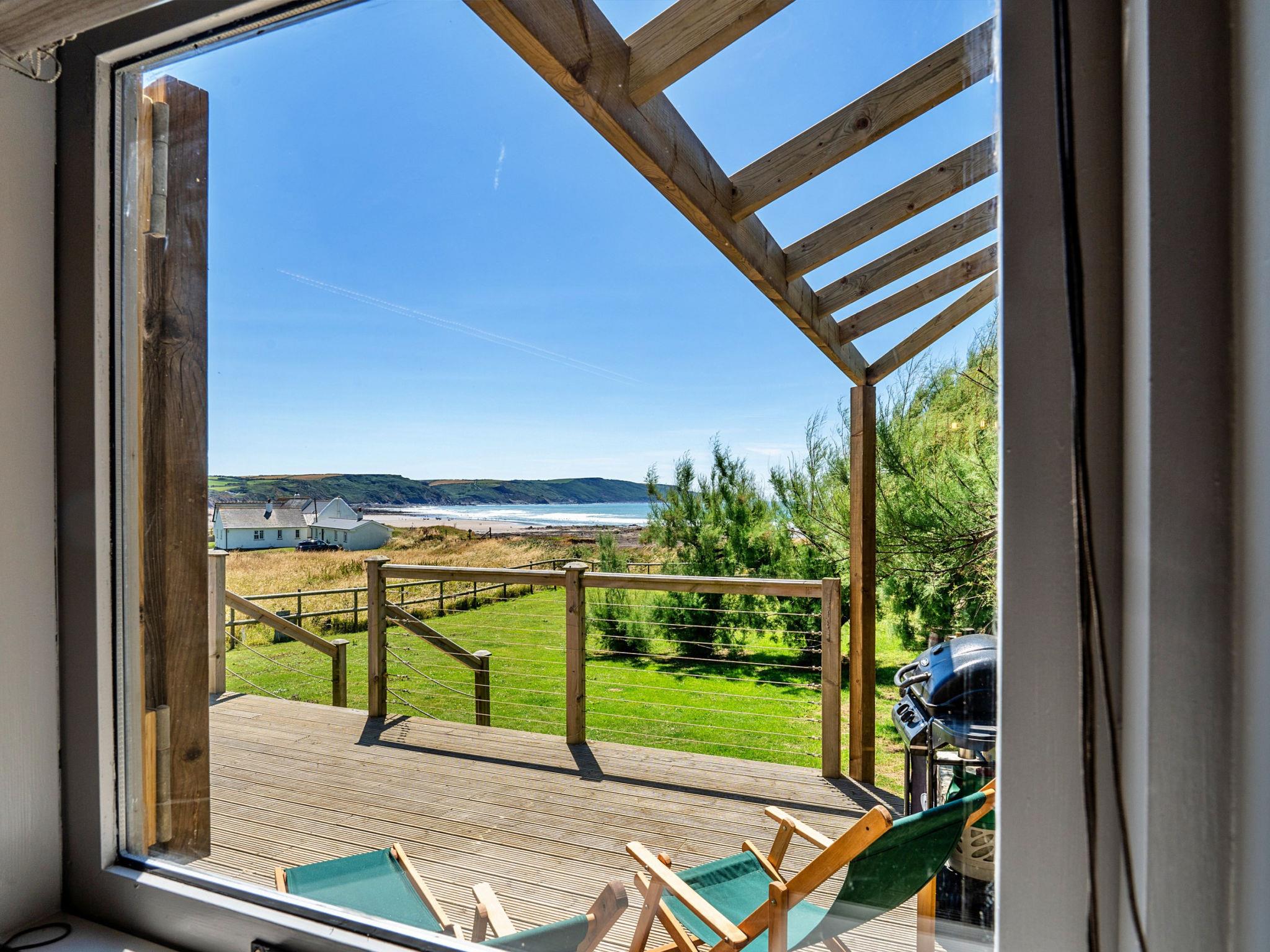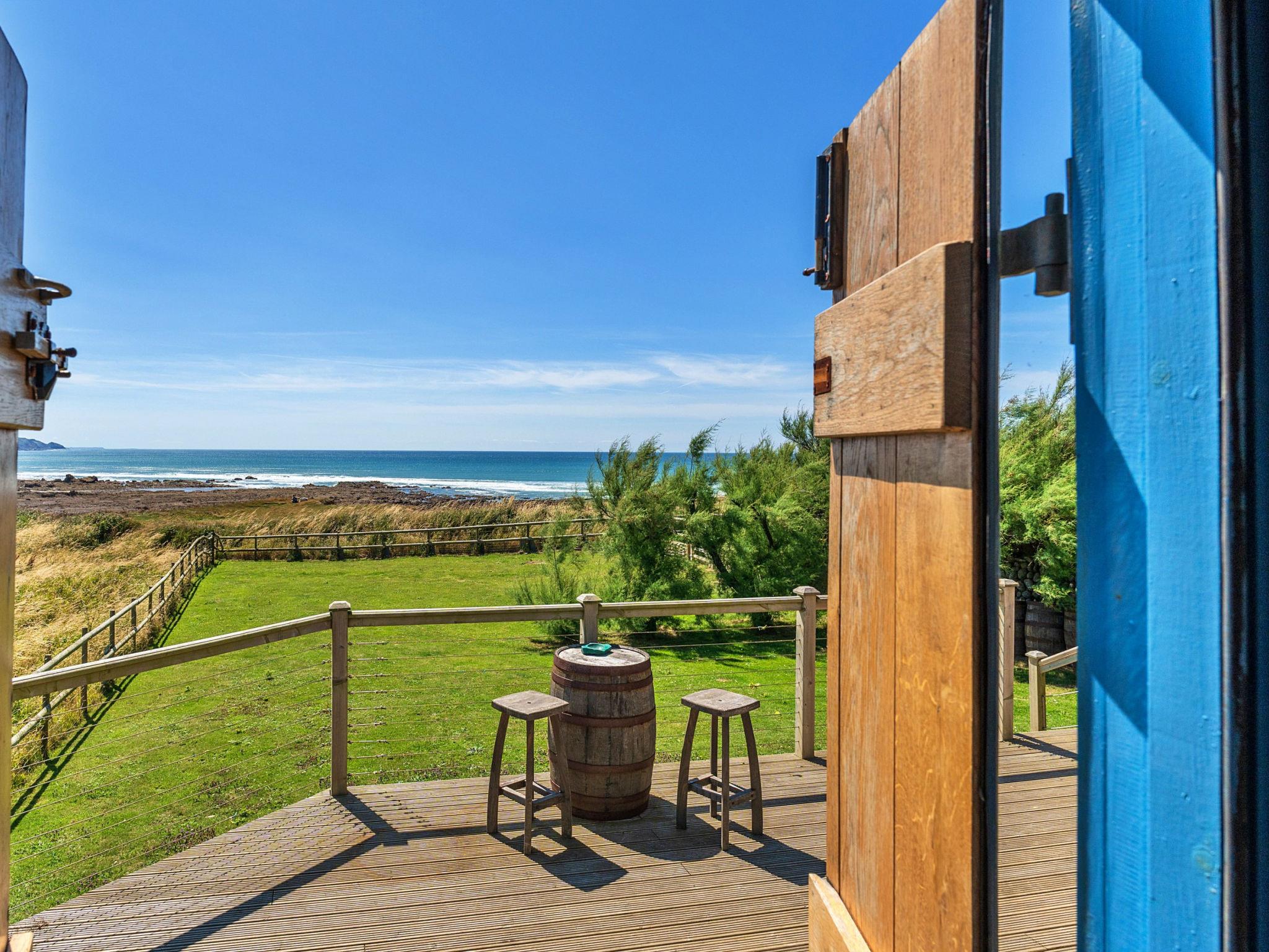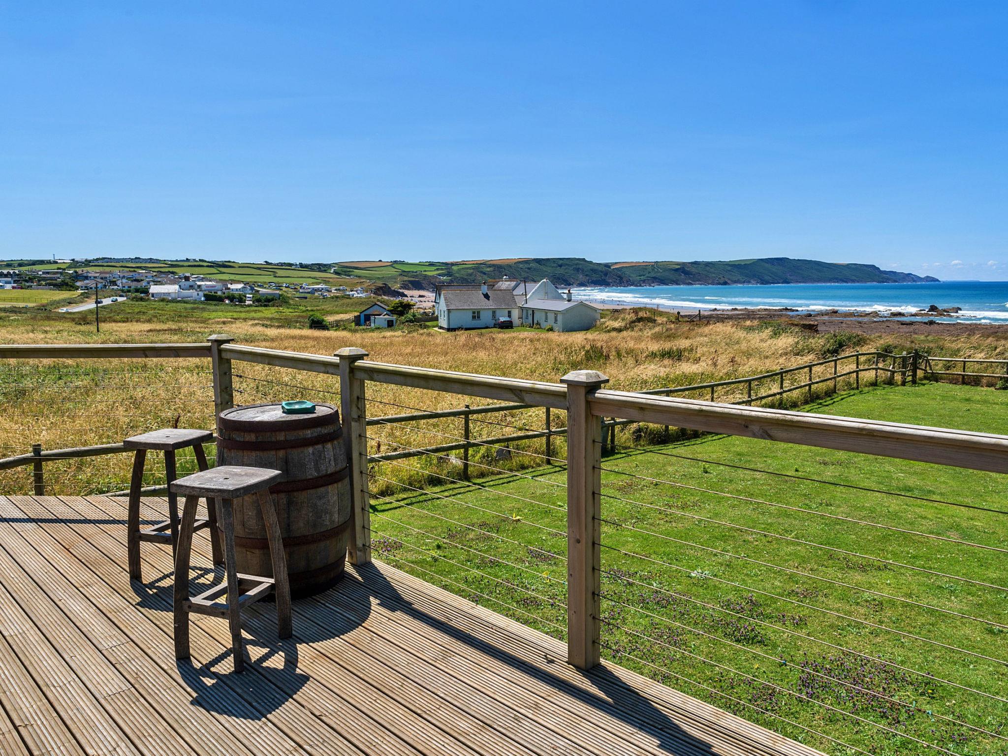 Widemouth Bay: Timber house. Private: garden. Garden furniture.
