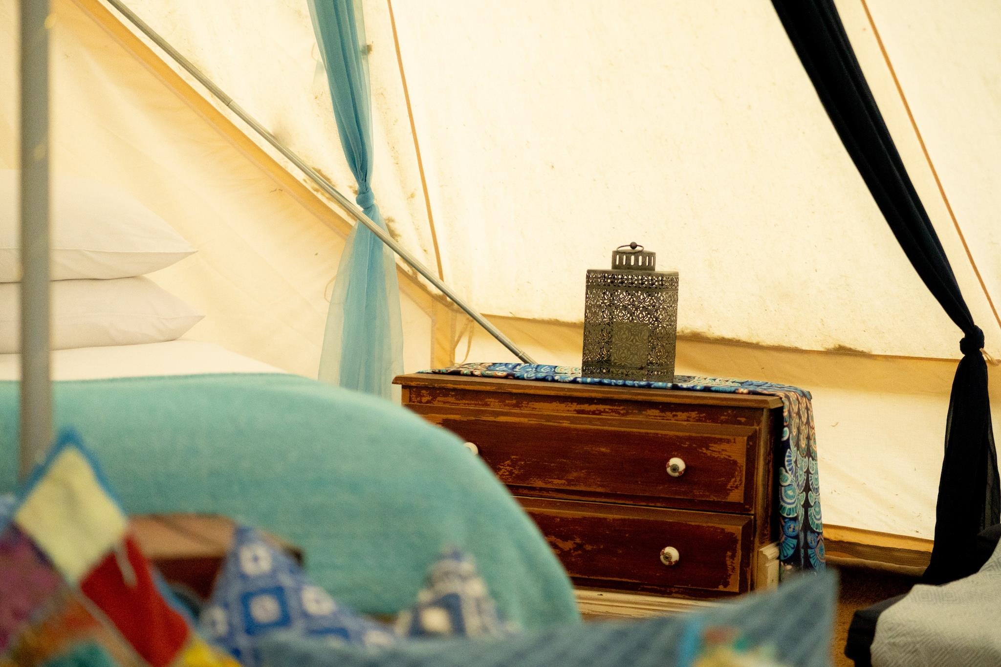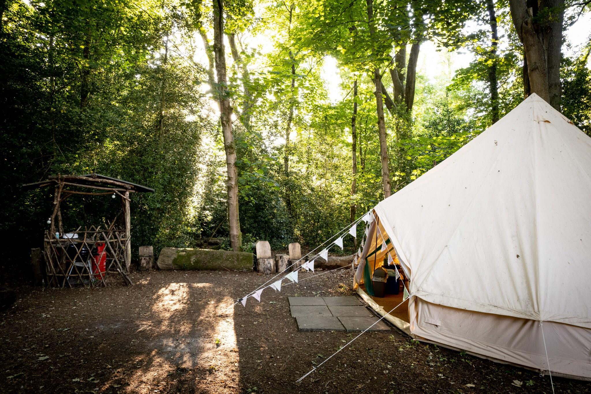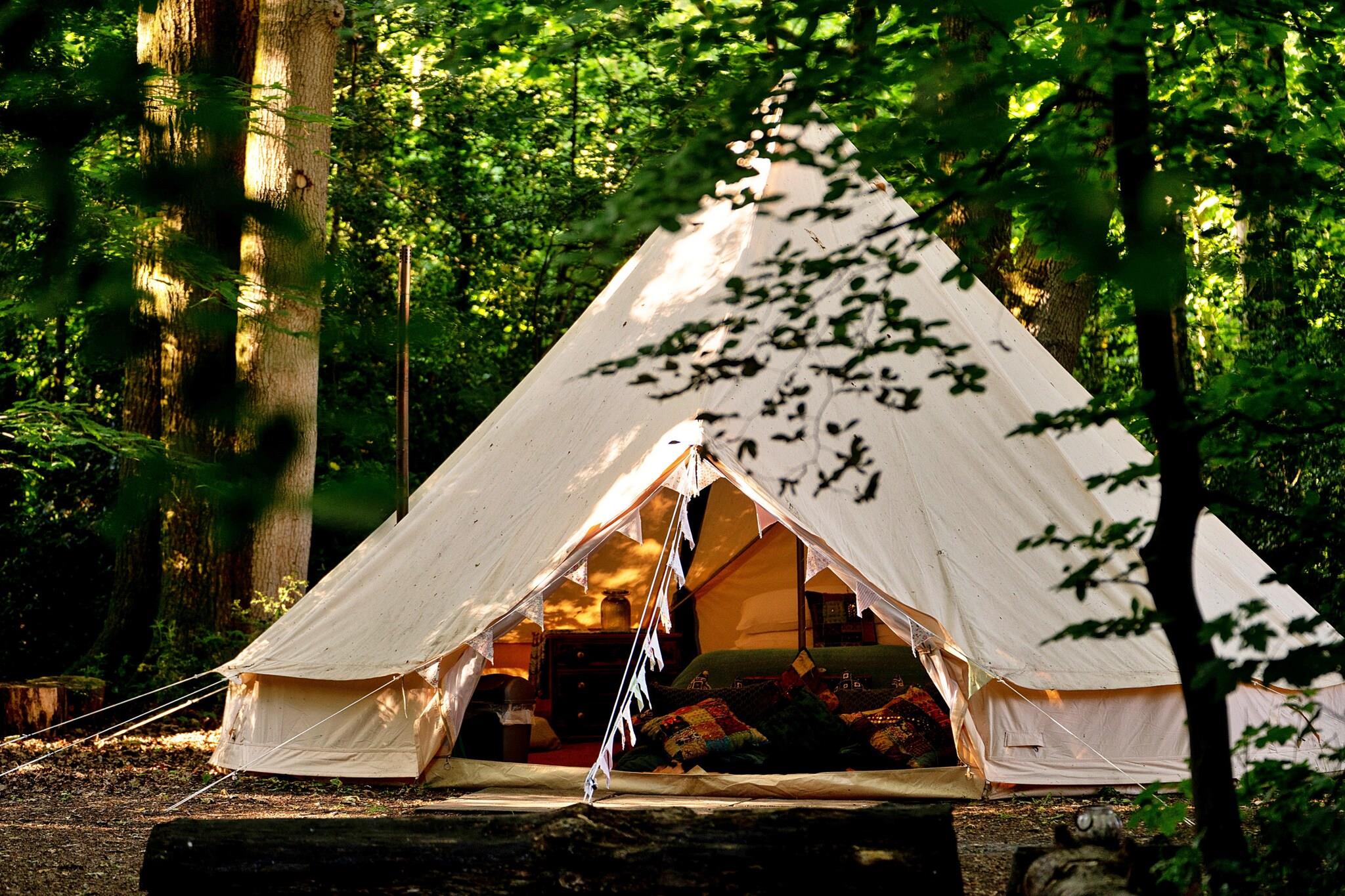 Beliggende i et magisk privat skovområde på grænsen til Hampshire og Berkshire nær Newbury, giver disse charmerende bælg et fredeligt tilflugtssted for par og familier. Bælgene sover 2 voksne i en dobbeltseng og 2 børn i Z-udklappelige senge, hvilket gør dem perfekte til at udforske lokalområdet eller blot slappe af i naturen. Gæsterne har fuld adgang til skoven, hvor børn kan bygge lejre, lege på dækgyngen og samle nedfaldent træ til bålpladserne. Det store klokketelt på seks meter er lyst og luftigt med dobbelt døråbning, indrettet i beduinstil med hynder og tæpper. Den har en dobbeltseng til voksne og sammenklappelige Z-senge til børn. Privatlivets fred er sikret med et nærliggende toilet, bruser og håndvask, og et udendørs pyntet siddeområde tilbyder et hyggeligt sted at nyde udendørs. Alt sengetøj, håndklæder, køkkenredskaber og en bålplads er til rådighed, hvilket skaber en komplet glamping-oplevelse. Dette off-grid websted tilbyder et roligt, naturligt miljø uden elektricitet - selvom gæster kan få deres telefoner opladet i ejernes hus, hvis det er nødvendigt. Indenfor er der en indendørs brændeovn til varme, sammen med et gaskomfur, grill, service, bestik og vand på flaske. Skovmiljøet er fyldt med hemmelige passager, træskulpturer og dyreliv, der tilbyder en magisk atmosfære for både børn og voksne. Pladsen er beliggende i landsbyen Woolton Hill, som har en butik, postkontor, tre pubber inden for gåafstand og et månedligt landsbymarked. Det er en ideel base for at udforske nærliggende attraktioner såsom Highclere Castle (berømt som Downton Abbey), National Trusts The Chase naturreservat, Newbury Racecourse og kanalbådsture til Hungerford. Omgivet af naturskønt landskab er der masser af vandre- og cykelstier at nyde lige fra stedet, hvilket gør det nemt at udforske uden at skulle køre. Området byder på en række udendørs aktiviteter og familievenlige attraktioner, hvilket sikrer et mindeværdigt ophold i hjertet af naturen. Bemærk venligst, at stedet er hjemsted for fritgående fugle og hunde, som kan nærme sig overnatningsstedet, så det er muligvis ikke egnet til dem, der er utilpas med dyreliv eller dyr. Gæster bør også medbringe deres eget træ, kul og fyrfadslys for at forbedre deres udendørsoplevelse. Denne skovglamping giver en unik, rolig flugt ind i naturens skønhed.