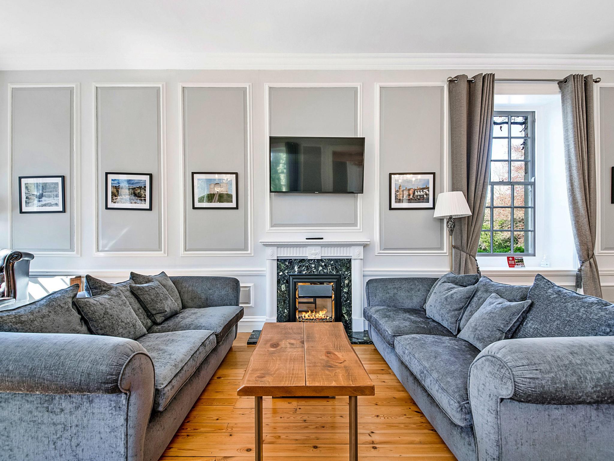 "Ryedale Hall Cottage", 3-room house 150 m2, on the ground floor. Object suitable for 6 adults. Living room with 1 sofabed, 1 pull-out bed and open-hearth fireplace. 1 room with 1 french bed. 1 room with 2 beds. Kitchen (oven, toaster, kettle, microwave, freezer). 2 showers/WC. Terrace 10 m2. Barbecue. View of the garden. Facilities: sauna, iron. Internet (WiFi, free). Parking (2 cars). Please note: non-smokers only.