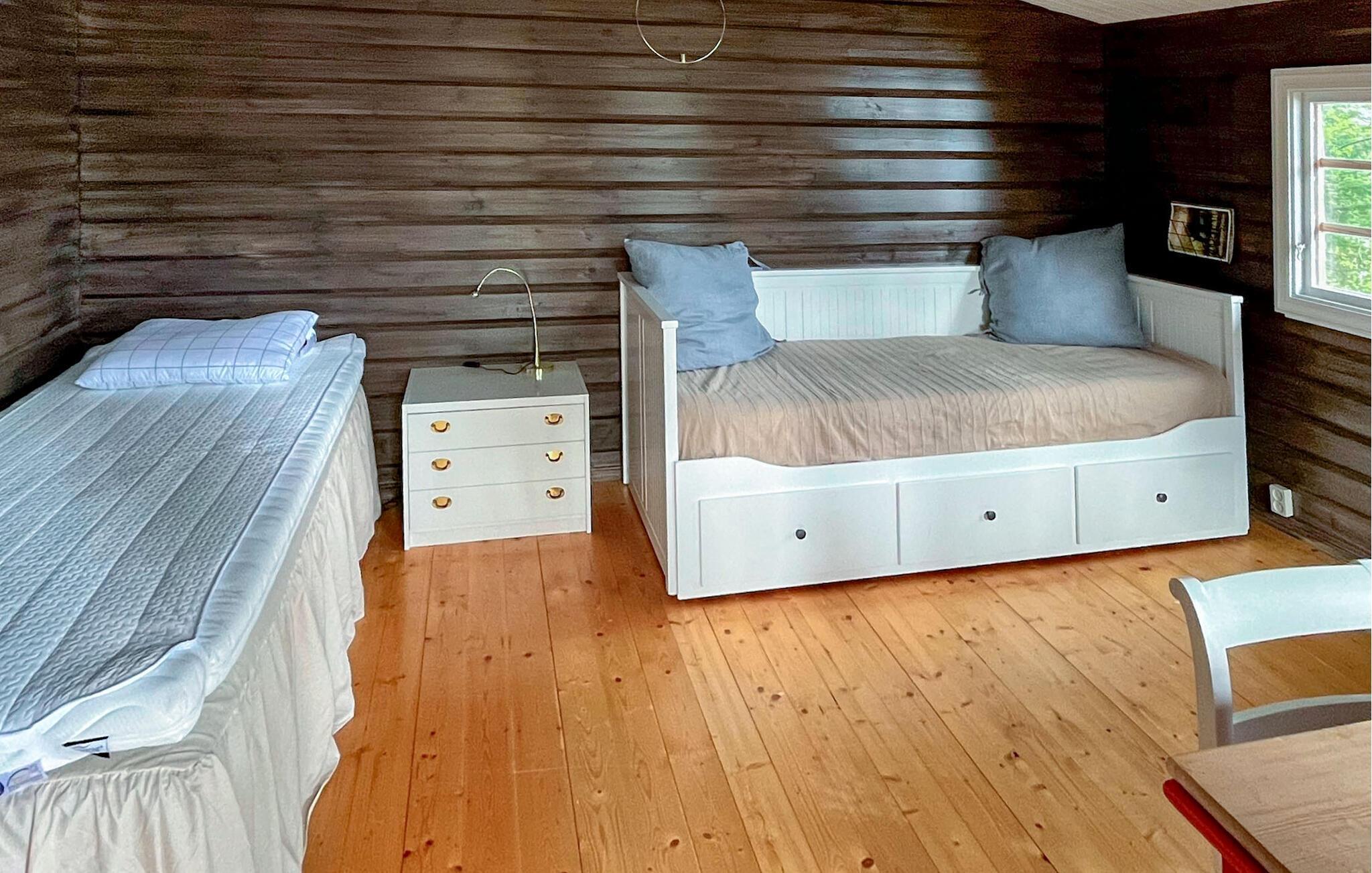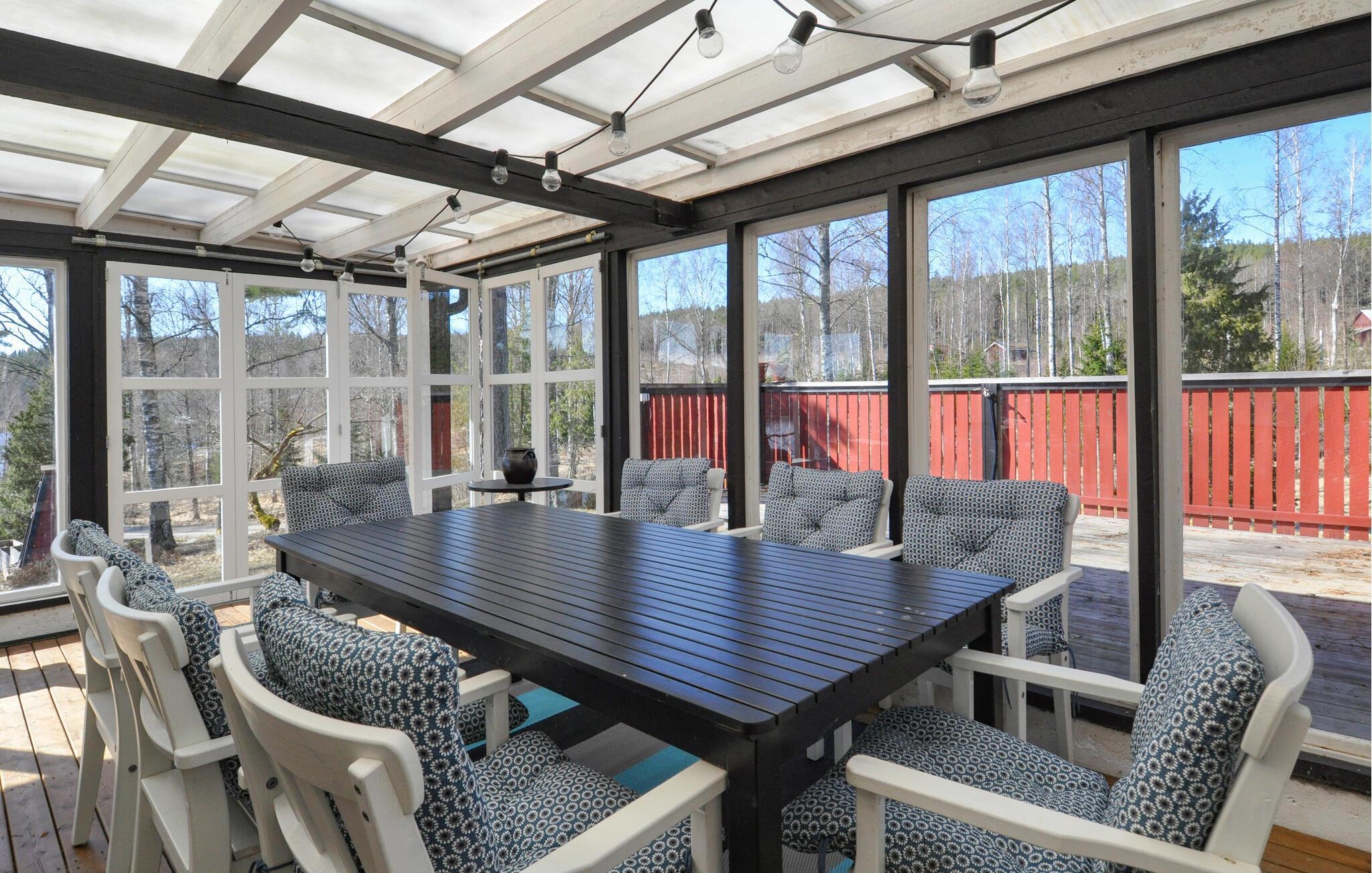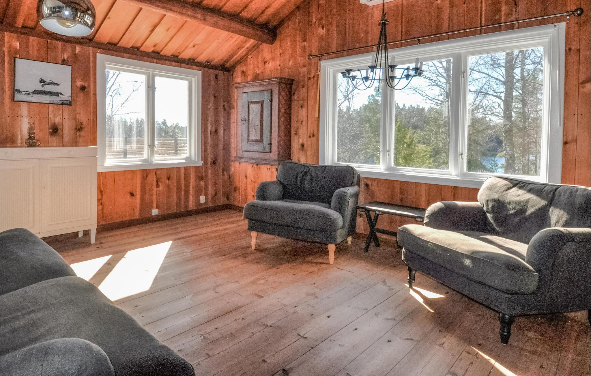 Denne rummelige oase er noget særligt med en vellykket blanding af rustik charme og moderne komfort. En idyllisk pause venter jer her, med den maleriske sø Östra Silen altid i udsigt. Tilbered friskfanget fisk og spis i den lyse spisesal eller i den indbydende udestue. Udnyt freden og roen til en afslappende læsestund i den hyggelige stue eller afslut dagen med et brætspil.