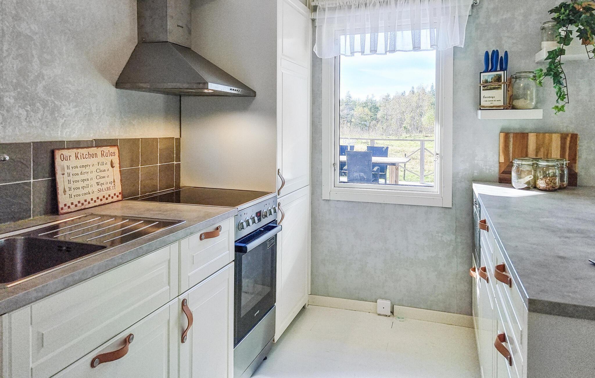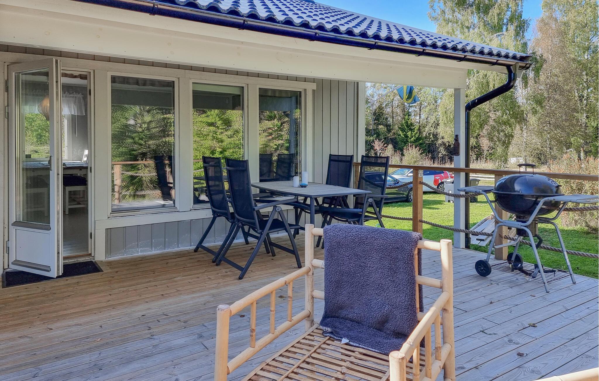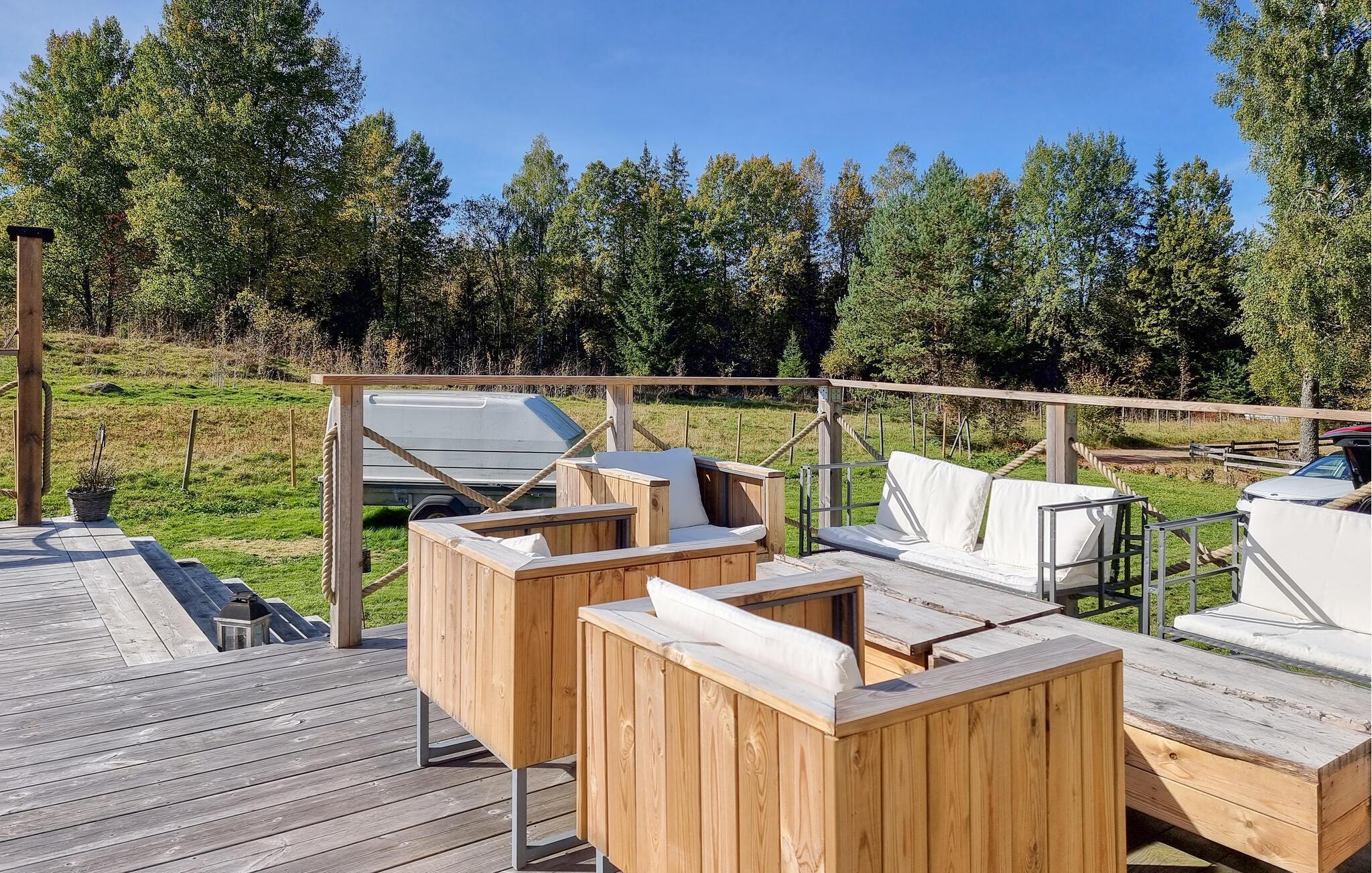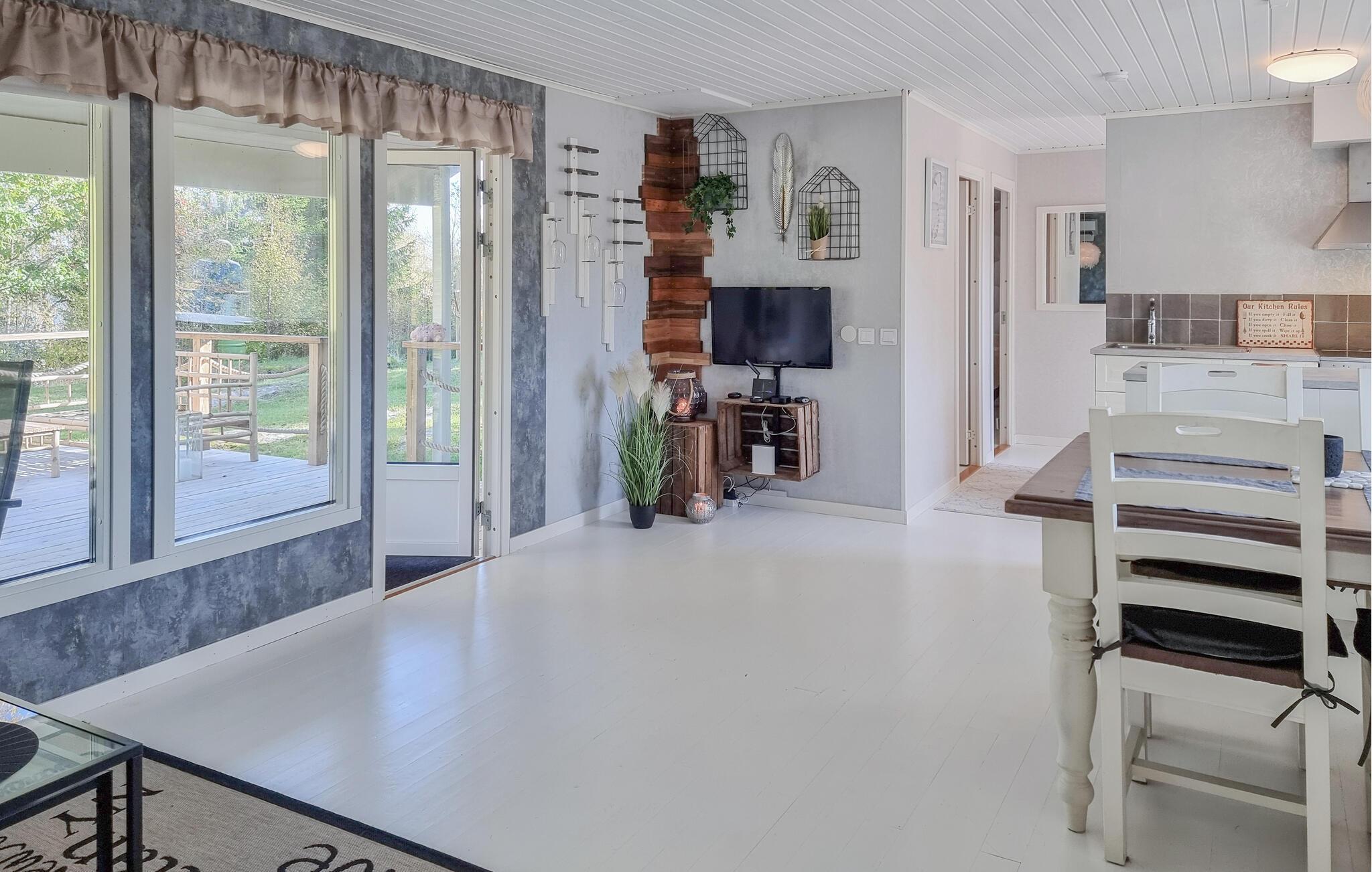 Dette komfortable feriehus inviterer jer og jeres kære til en afslappende ferie med sit lyse og smagfulde design. Afslut dagen foran den knitrende biopejs, eller tilbered lækre måltider i det veludstyrede køkken. Den rummelige træterrasse med grill danner den perfekte ramme for solrige dage og hyggelige aftener. Udsigten over den nærliggende sø skaber en idyllisk atmosfære, der lægger op til ren afslapning.
