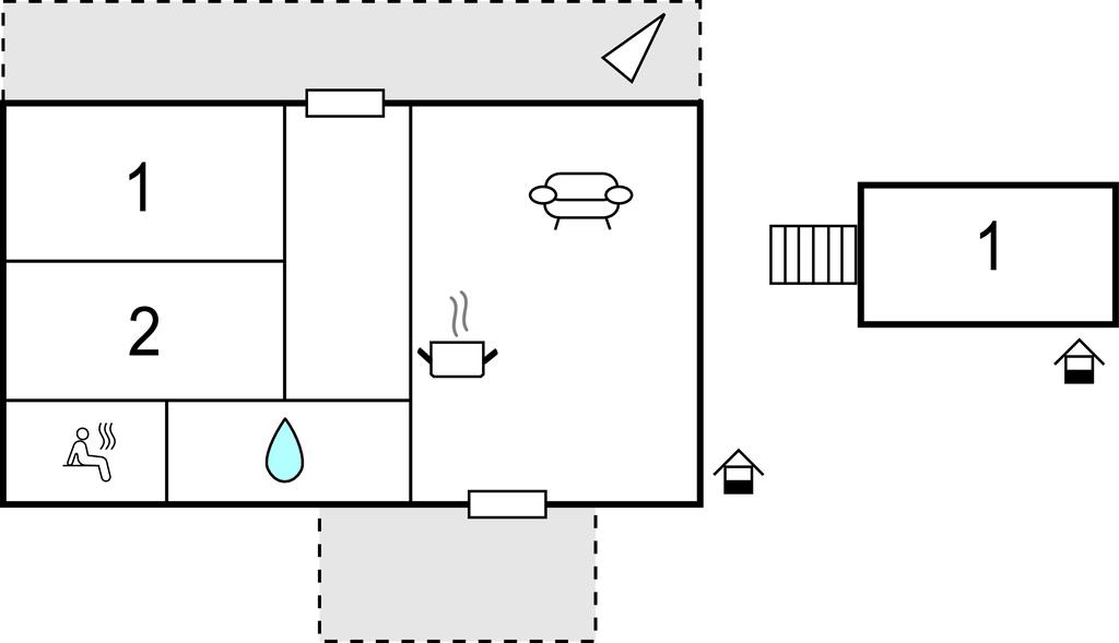 Soveværelse (nr. 1) - 2 Sovepladser. (Enkeltseng(e)).