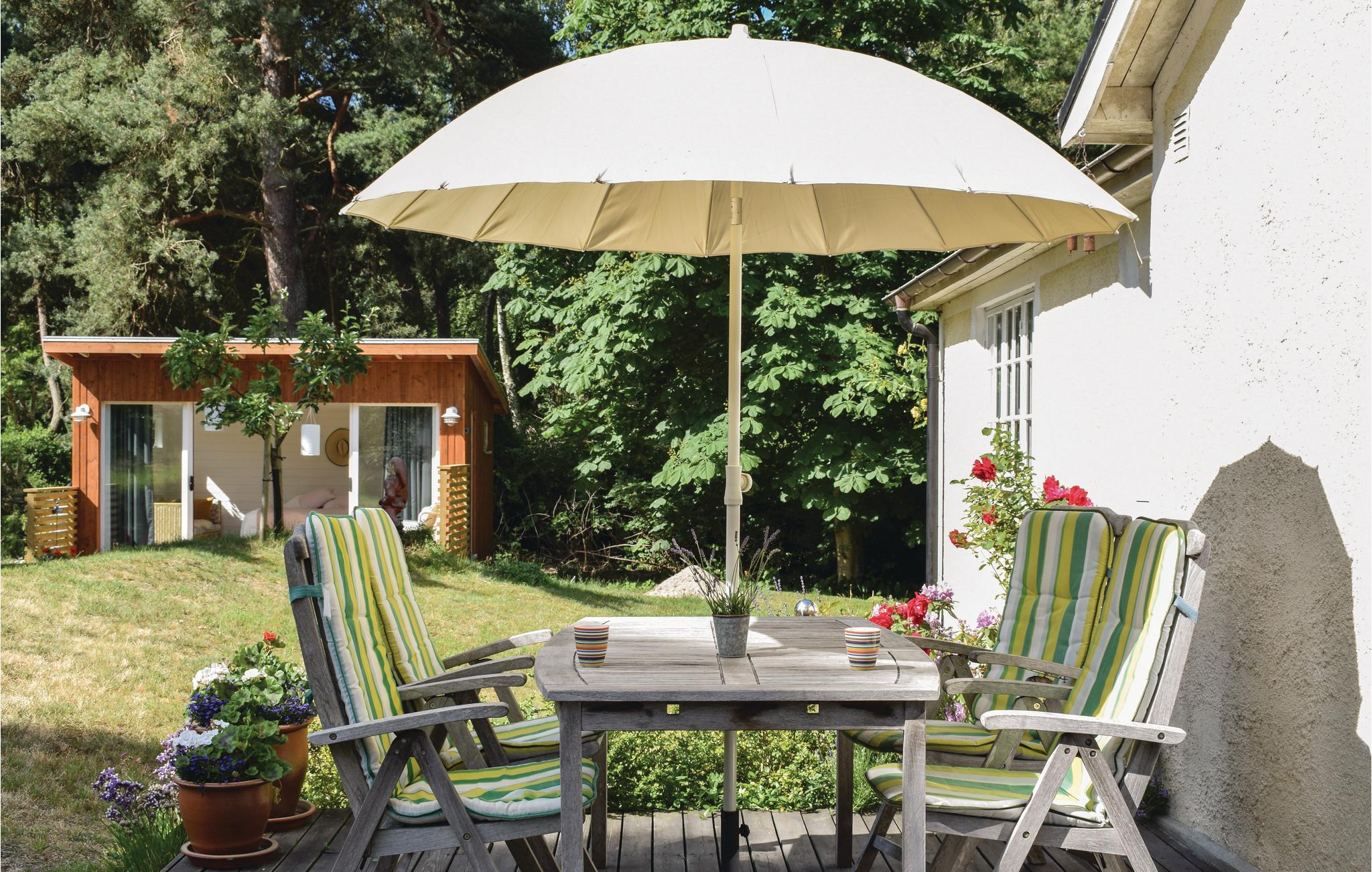Sommerens feriedage bliver en sand fornøjelse med en dejlig frokost under parasollen i dette feriehus' dejlige frodige have. I annekset på 15 m² er der to senge, perfekt til teenagere eller bedsteforældrene.