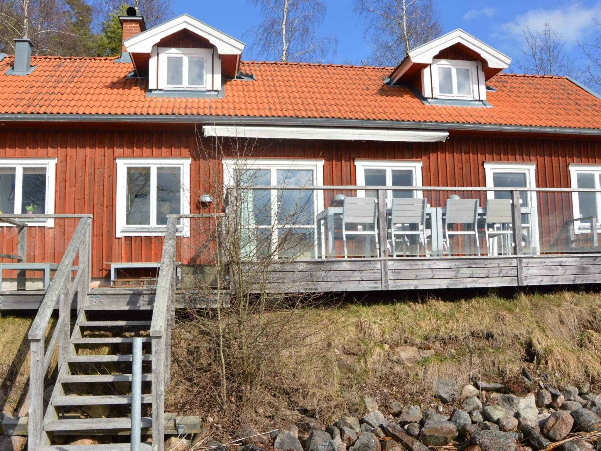 Ett stort bord för hela sällskapet finns på den rymliga altanen, här spenderar ni med fördel härliga sommardagar. En roddbåt ingår i hyran mellan 1/5-30/10 och där finns flytvästar att låna.