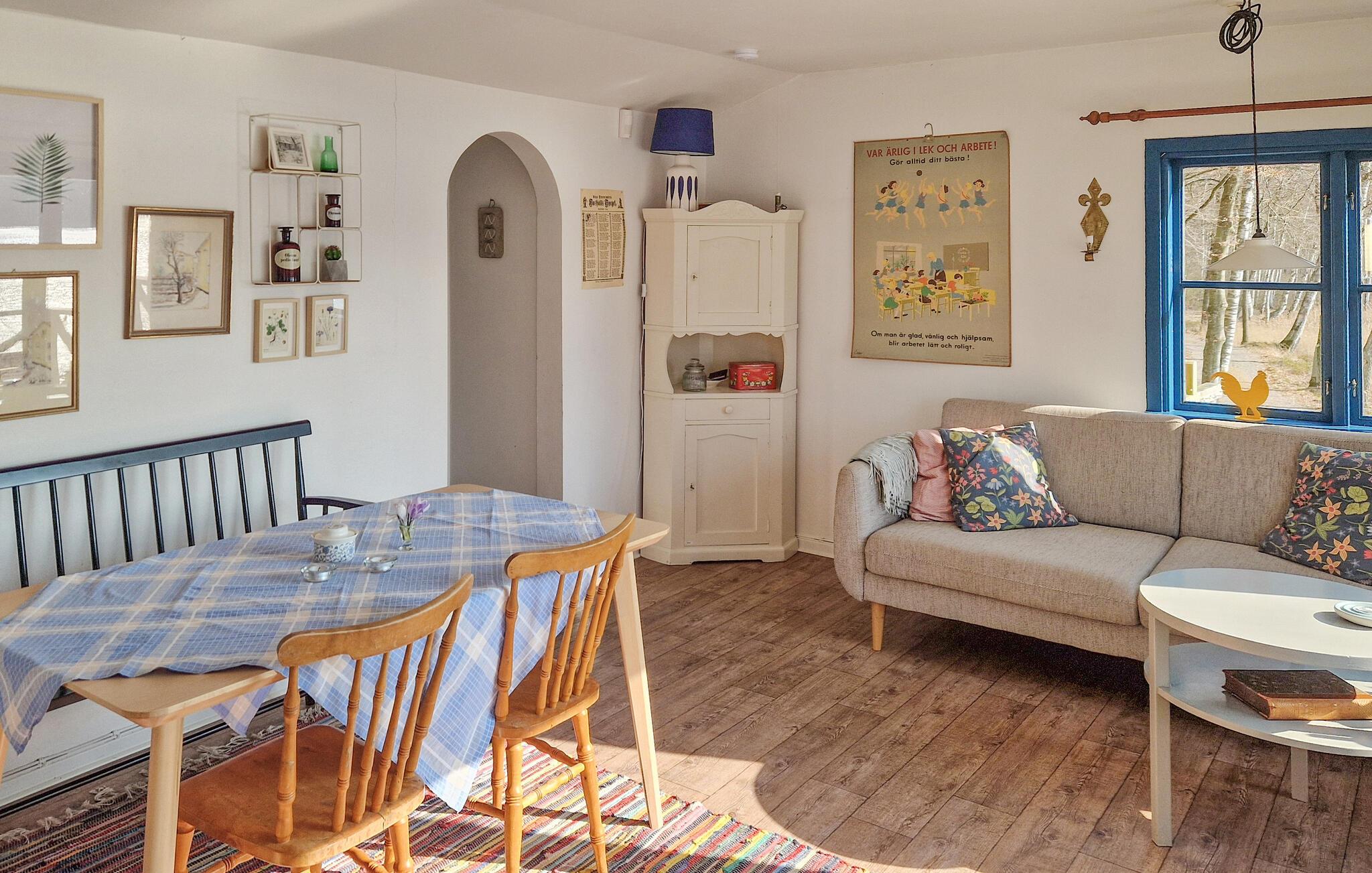 Gode muligheder for at se elge komme gennem skoven og drikke vand fra søen. I bor ikke langt fra Söderåsens nationalpark. Her kan I vandre i de smukke bøgeskove, gennem dybe dale og beundre de strømmende vandløb. I Perstorp ligger Plastens hus, som er det eneste plastmuseum i hele norden. Her kan I se hvordan plastmaterialet har udviklet sig og hvilken betydning det har haft i det svenske samfund. Husets ejer fortæller: Husets grund blev oprindeligt ejet af min mormor og morfar. I 1970erne forærede en god ven min morfar grunden i 50 års fødselsdagsgave. Vennen, der var snedkermester, byggede så et sommerhus til sig selv og til sin familie af genbrugsmaterialer. Da han døde, købte mine forældre huset. I 1990erne lagde de el og vand ind og byggede badeværelse og et ekstra soveværelse. Da vi overtog huset, satte vi ny kamin ind og renoverede husets facade. I foråret 2017 tilføjede vi en terrasse, lagde nyt gulv i den ældre del af huset og byggede et nyt læskur ca. 20 m fra huset.