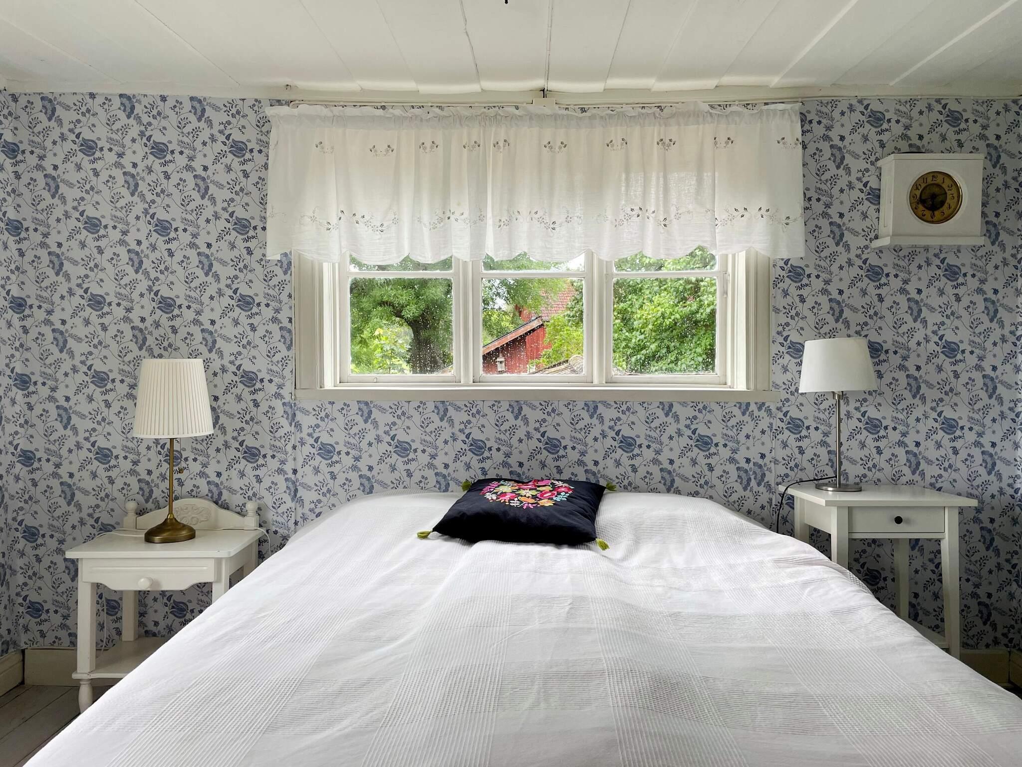 Denna charmiga stuga på två plan välkomnar er med en trevlig hall där ni når ett litet badrum med wc, handfat och dusch. Vidare in når ni husets hjärta, ett stort kök med en vacker vedspis som pryder rummet. Här finns det bland annat kyl/frys, två spisplattor och en mindre ugn. Matbord för trevlig middagar. Från kök och hall når ni ett vackert och rogivande sovrum med säng för två. Övervåningen når ni från hallen via en något brant trappa som ej är barnvänlig och nyttjas med försiktighet. Här finns ett behagligt sovrum med två sängar.