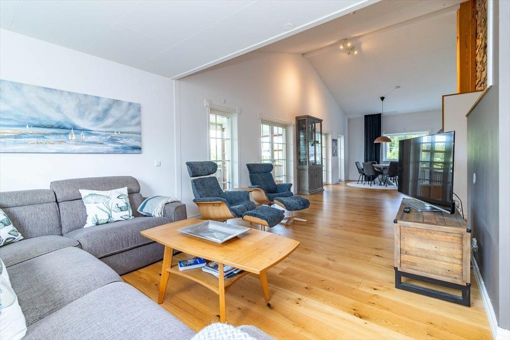 Huset har en boligareal på ca. 160 m² og plads til op til 6 personer. Der er tre soveværelser med dobbeltsenge, to badeværelser med bruser og toilet, en åben stue- og køkkenafdeling samt entré med garderobe. Derudover findes et brugshus med vaskemaskine og tørretumbler. Køkkenet er udstyret med blandt andet 4-plade induktionskogeplade og opvaskemaskine, og det runde spisebord indbyder til fælles måltider. I stuen er der et hjørnesofa, to lænestole og et TV med tyske programmer. Fra stue- og køkkenområdet kommer du ud på den delvist indhegnede terrasse med rattanmøbler, hvor en åben hjørne med Hollywood-gynge skaber afslappende timer i det fri. Saunahuset med egen terrasse ligger kun få skridt væk, og der findes også et fritstående glashus/tehus.