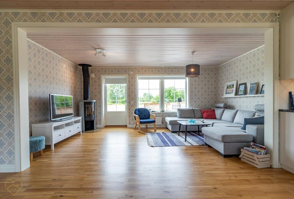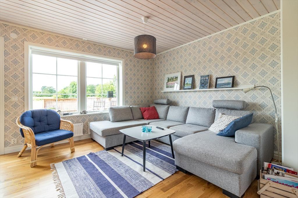 Feriehuset ligger i den nordlige del af øen Öland nær Byxelkrok i rolige, landlige omgivelser og er omgivet af en rummelig græsplæne, som er særligt velegnet til leg. Der er cirka 1,1 km til den nærmeste offentlige badestrand ved Østersøen. En dagligvarebutik i Byxelkrok når du efter cirka 8,6 km, fyrtårnet “Långe Erik” ligger omkring 8,7 km væk, og byen Borgholm ligger cirka 50 minutters kørsel mod syd; her finder du blandt andet slotsruinen og det kongelige sommerpalads Solliden. På Öland er der mange aktiviteter i sommersæsonen, såsom go-kart eller kamelridning; ved nogle badestrande kan man også leje både.