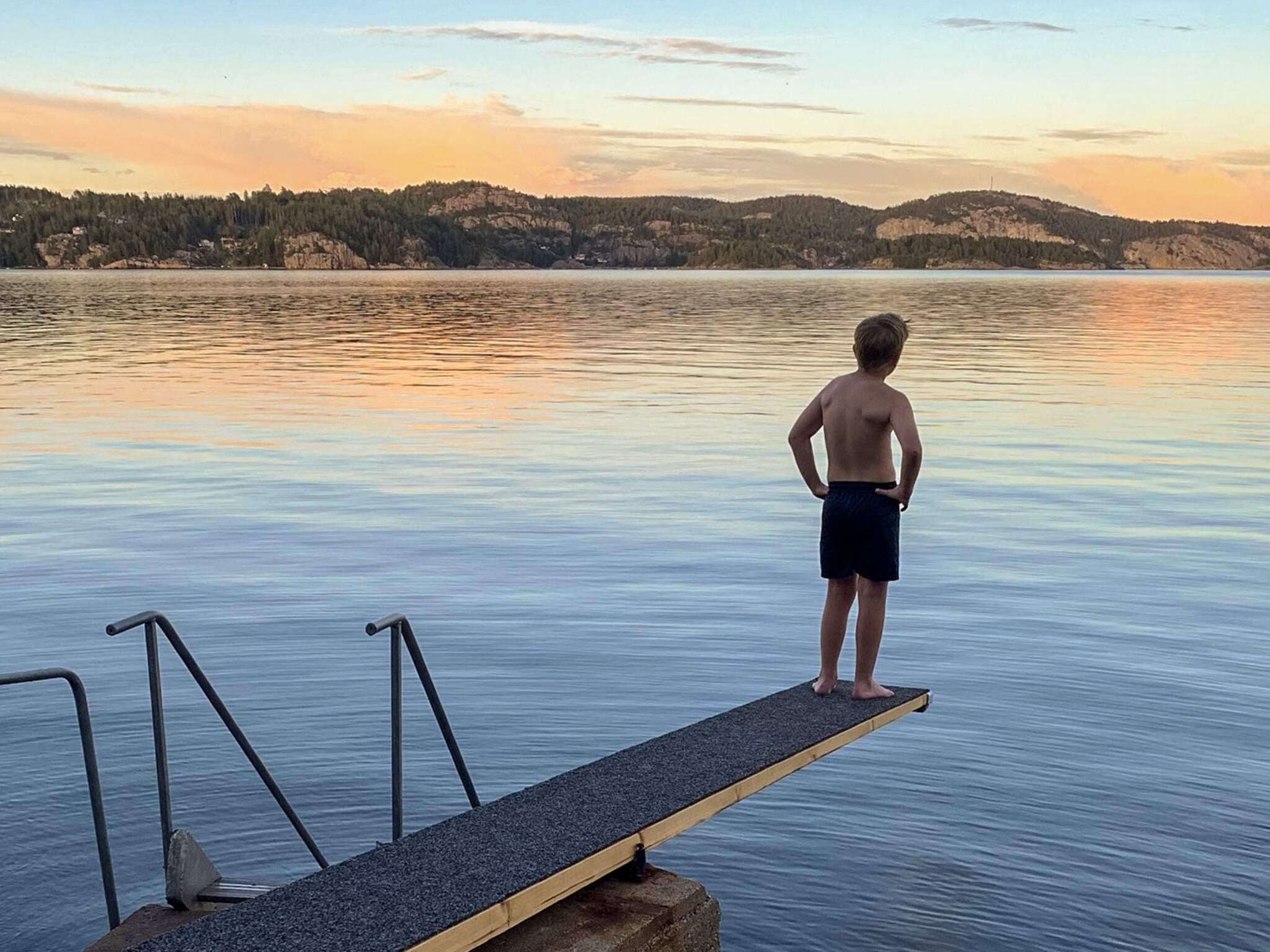 På några få minuters promenad når ni den fina badplatsen med bryggor, trampolin, klippor och sandstrand. En fin plats att äta, bada och umgås på.