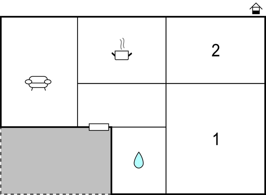 Her er et lille og hyggeligt feriehus, med en overdækket terrasse, hvor I har mulighed for at nyde alle jeres måltider, på de varme og solrige dage.