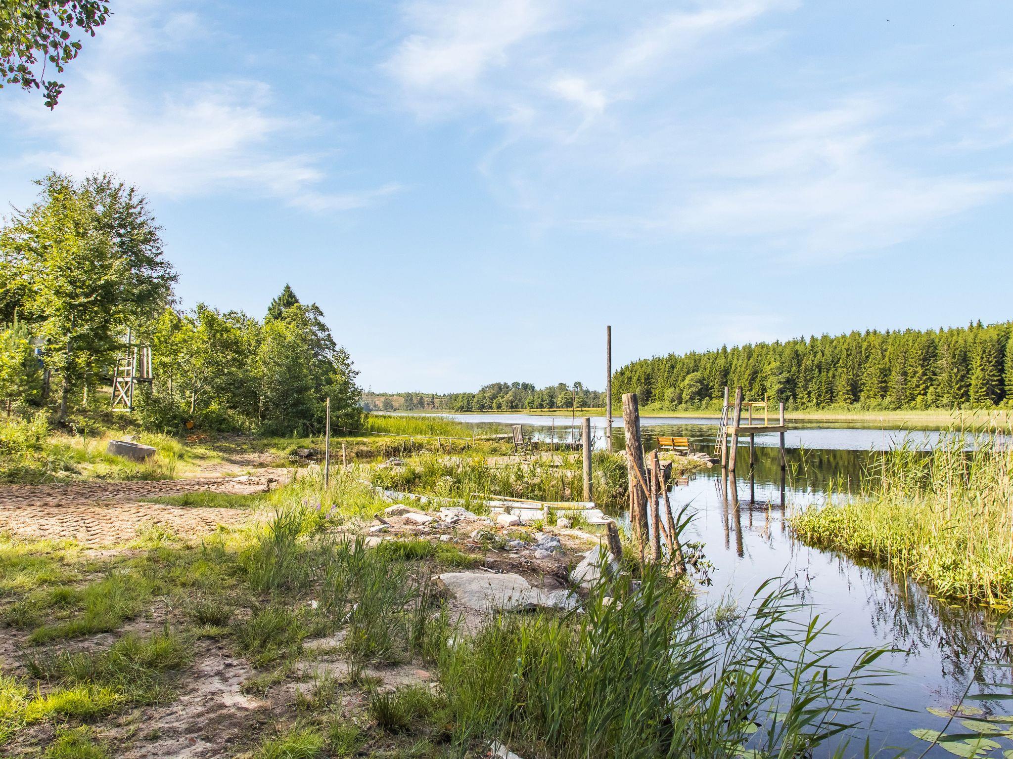 Bullaren 11 km from Östad: Small timber house "Enerhögen Lingonet". In a hamlet 10 km from the centre of Östad, 70 km from the centre of Uddevalla, on a slope, 60 m from the lake. Bathing jetty. Private: natural state property 500 m2 with meadow. Rowing boat. 2.5 km long bumpy motor access. Parking at the house. Shop 10 km, supermarket 27 km, bus stop "Tanumshede" 30 km, railway station "Tanumshede" 30 km, ferry "Helsingborg" 370 km, sandy beach "Sundshult" 6 km. Fishing possibilities 50 m. Well-known lakes can easily be reached: Bullaren 6 km.