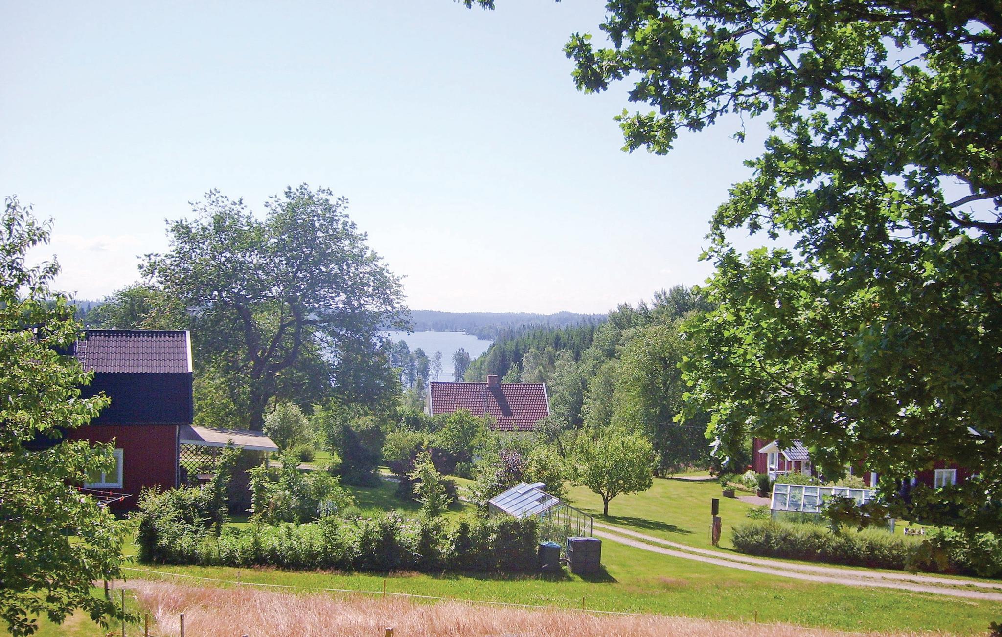 Højt beliggende feriehus med søudsigt over Majsjön i Småland.