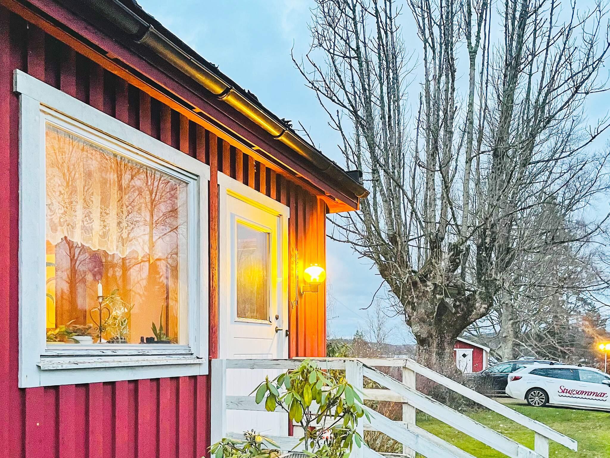 Trädgården är stor och du har utsikt över sjön som är nedanför. Huset är rött med vita knutar av äldre stil. Inredningen är trevlig, blandad stil och köket är något slitet. Här bor man för närhet av Dalsland vackra natur, gångavstånd till bad och lugnet intill. Huset ligger enskilt fast ändå inom räckhåll till det mesta. Du välkomnas in i en hall med furu där det finns gott om utrymme för avhängning. Till vänster ligger köket med matplats för 6 personer. Bakom köket ligger allrum och sällskapsyta med soffa och tv. Här nere finns ett sovrum med en dubbelsäng men ingång till wc/duschutrymme. Här står också tvättmaskin så perfekt om du vill stanna 14 dagar eller reser med småbarn. Till höger ligger ett arbetsrum/sovrum med två enkelsängar.