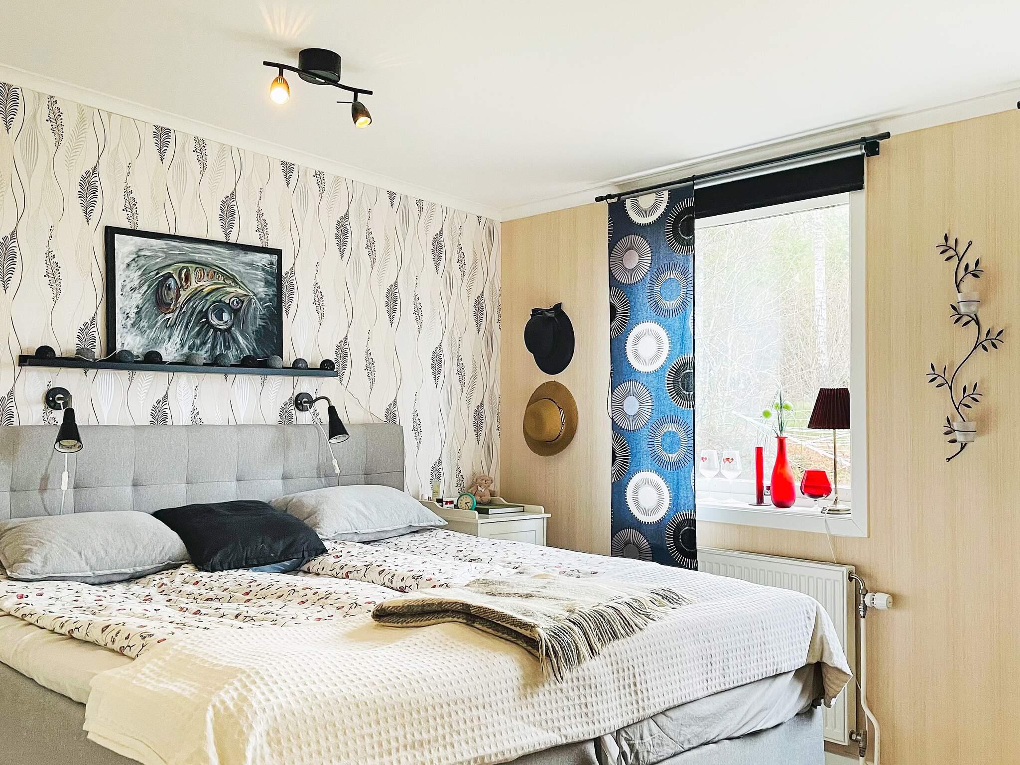 Trappan leder till övreplan med ytterligare ett sovrum med en säng på 140cm. I detta sovrum har du vacker utsikt över sjön. Sovrummet här är speciellt med en maffig tak-och väggmålning från en gammal konstnär som bodde i huset för länge sedan. Det finns ytterligare en toalett med wc/handfat och duschutrymme här upp. I Edsleskog finns vackra naturreservat; Bräcke Ängar - som präglas av framförallt den gamla odlingskulturen. Ta ett besök till Klöverud som är Dalslands högsta berg, Baljåsen - sträcker sig 301 meter över havet. När Du parkerat bilen vid torpet Petersburg och vandrar leden via Björndalsberget upp till Baljåsen väntar Dig en slående utsikt över landskapet. Du bor nära sjön och här finns ett av de bättre sportfiskevatten. Ängebytjärnet - en handikappanpassad sportfiskeanläggning med inplanterad ädelfisk.