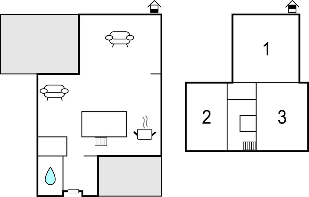 I husets stueplan er der køkken og stue i åben forbindelse og en åben pejs til varme og hygge. På øverste sal er der tre soveværelser med i alt syv voksensenge og en barneseng. Smal stejl trappe til første sal. Soveværelse 3 er et gennemgangsrum. Udendørs er der tre terrasser, den ene under tag. Her kan I nyde de lange afslappede feriedage med frisk luft og fantastisk udsigt. Huset er børnevenligt - her er bl.a. gynge og sandkasse. Når I skal på vandet, er der redningsveste fra 0 - 100+ kg.