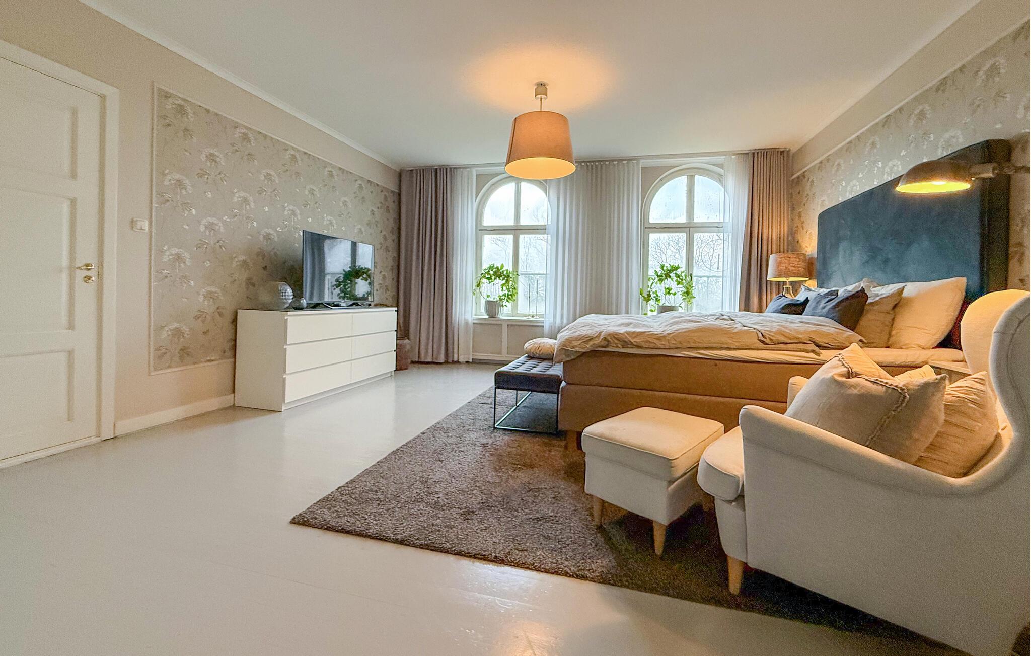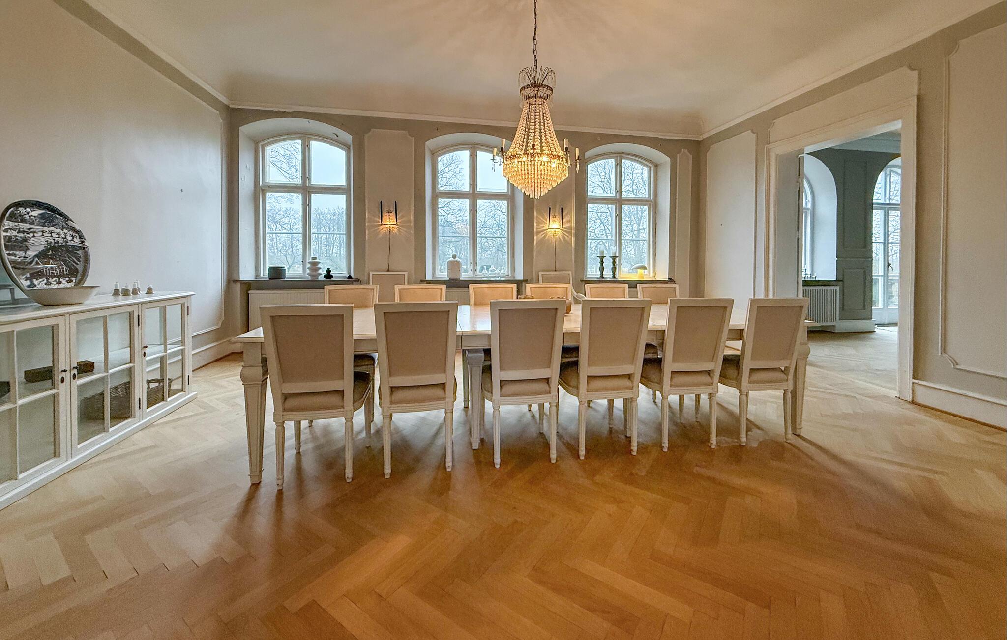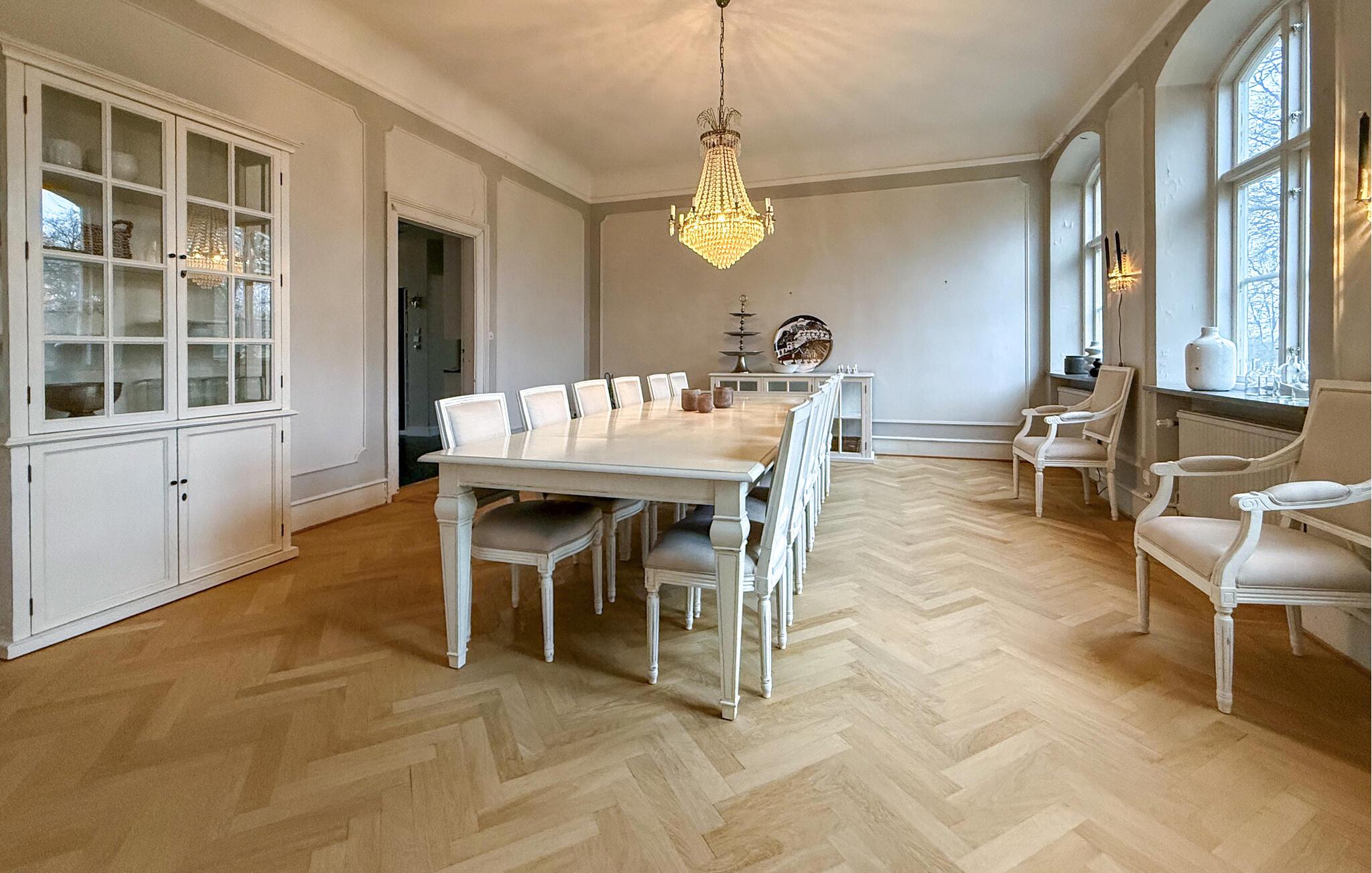 Beliggende kun få kilometer uden for Ekeby byder denne ejendom på fred, elegance og generøs komfort samt landlig idyl og nærhed til adskillige attraktioner. Gå ind i de stilfulde værelser og føl jer som en kongelig. De høje lofter, rummelige vinduer og elegante trægulve giver huset en eksklusiv atmosfære. Føl jer godt tilpas i stuen på de komfortable sofaer foran brændeovnen og nyd omgængelige aftener med familie eller venner. Den imponerende spisestue med lysekroner og et langbord lægger op til at nyde festlige måltider. Tilbered lækre retter i det rummelige landkøkken og nyd den unikke atmosfære.