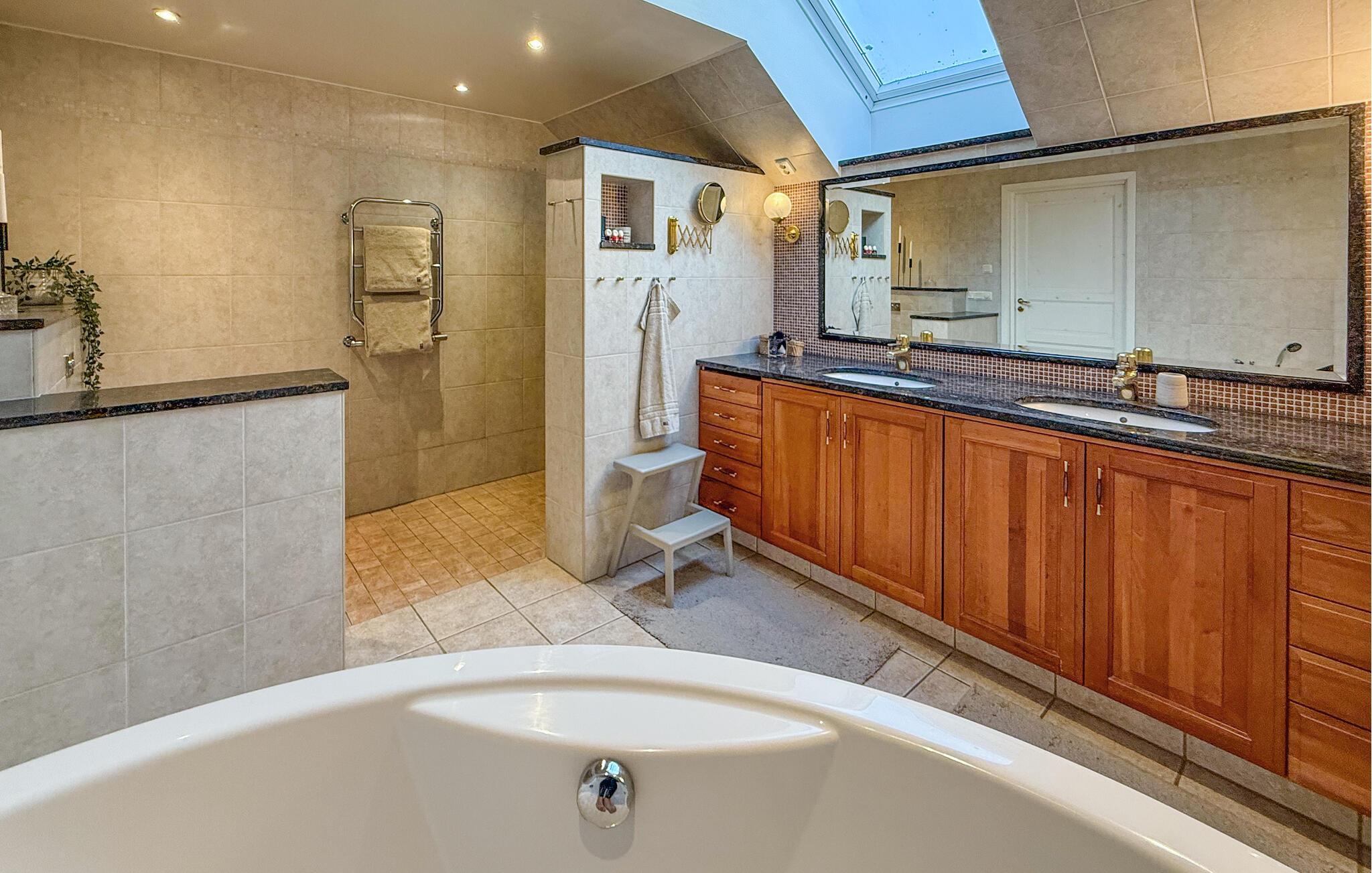 Træd ud i den rummelige have og slentre hen over den velplejede græsplæne eller slap af under de gamle træer. Den store park byder på plads til fritidsaktiviteter, mens de idylliske omgivelser lægger op til hvile og afslapning.