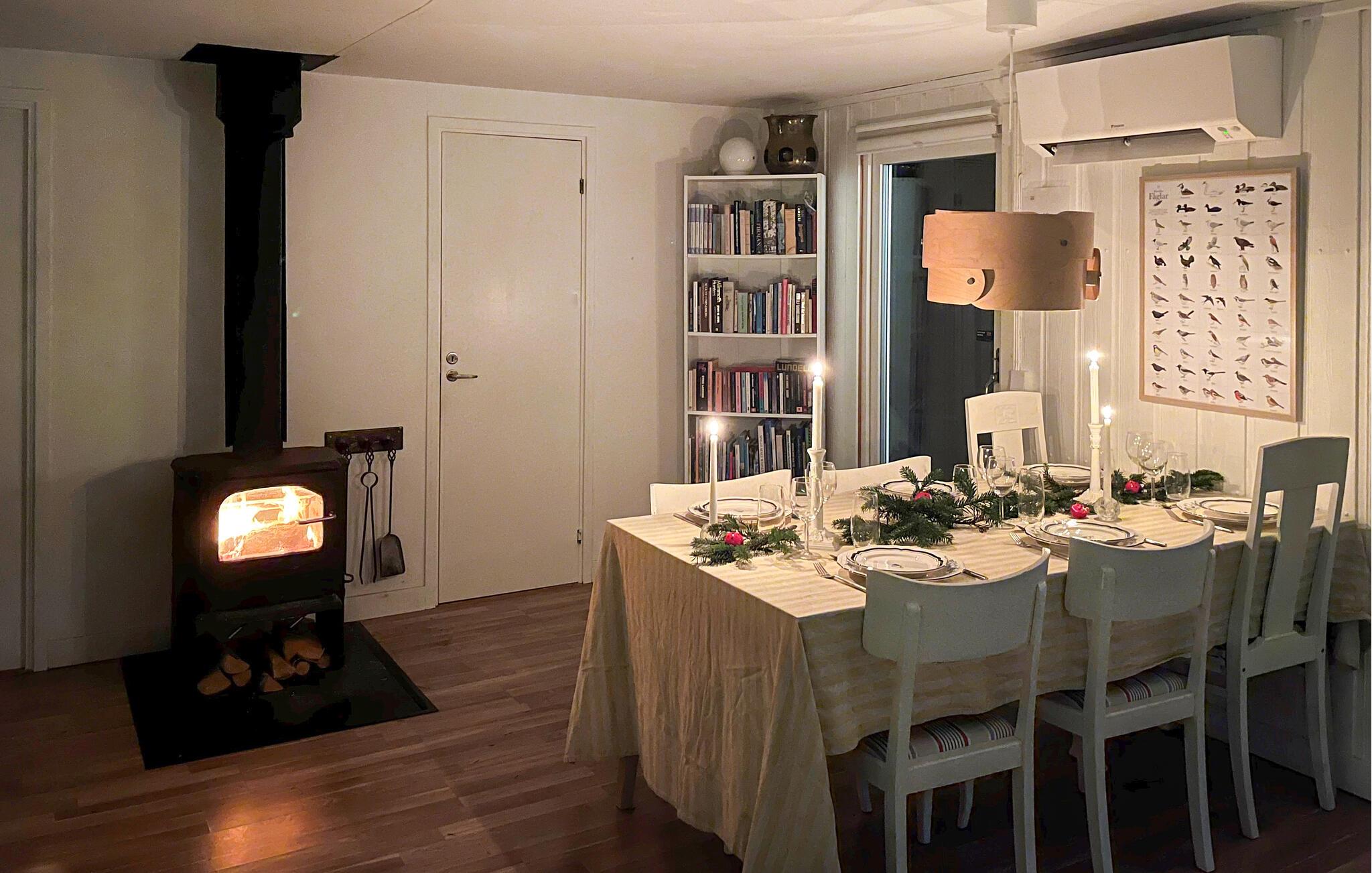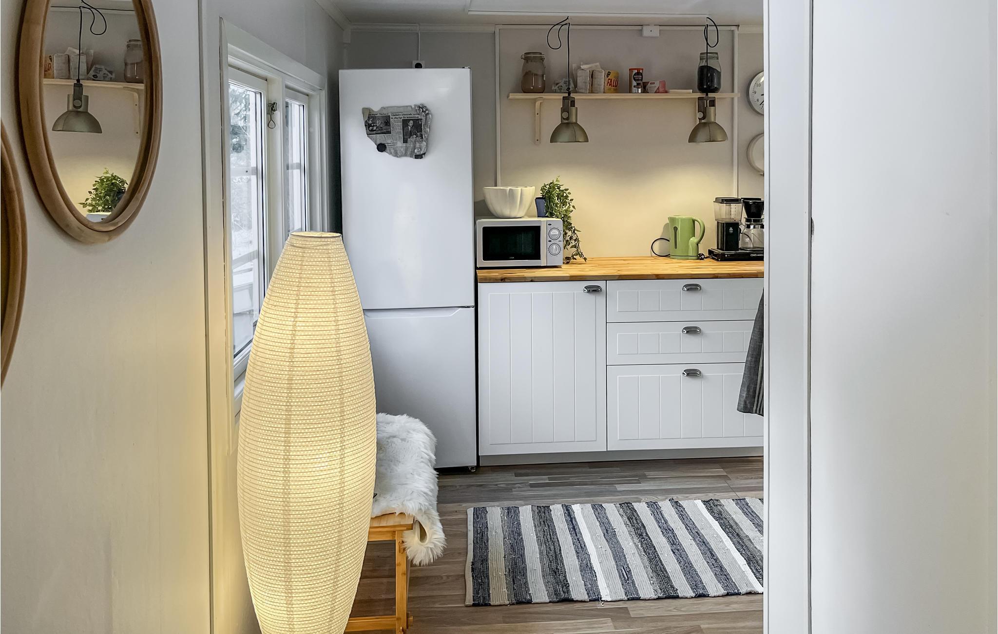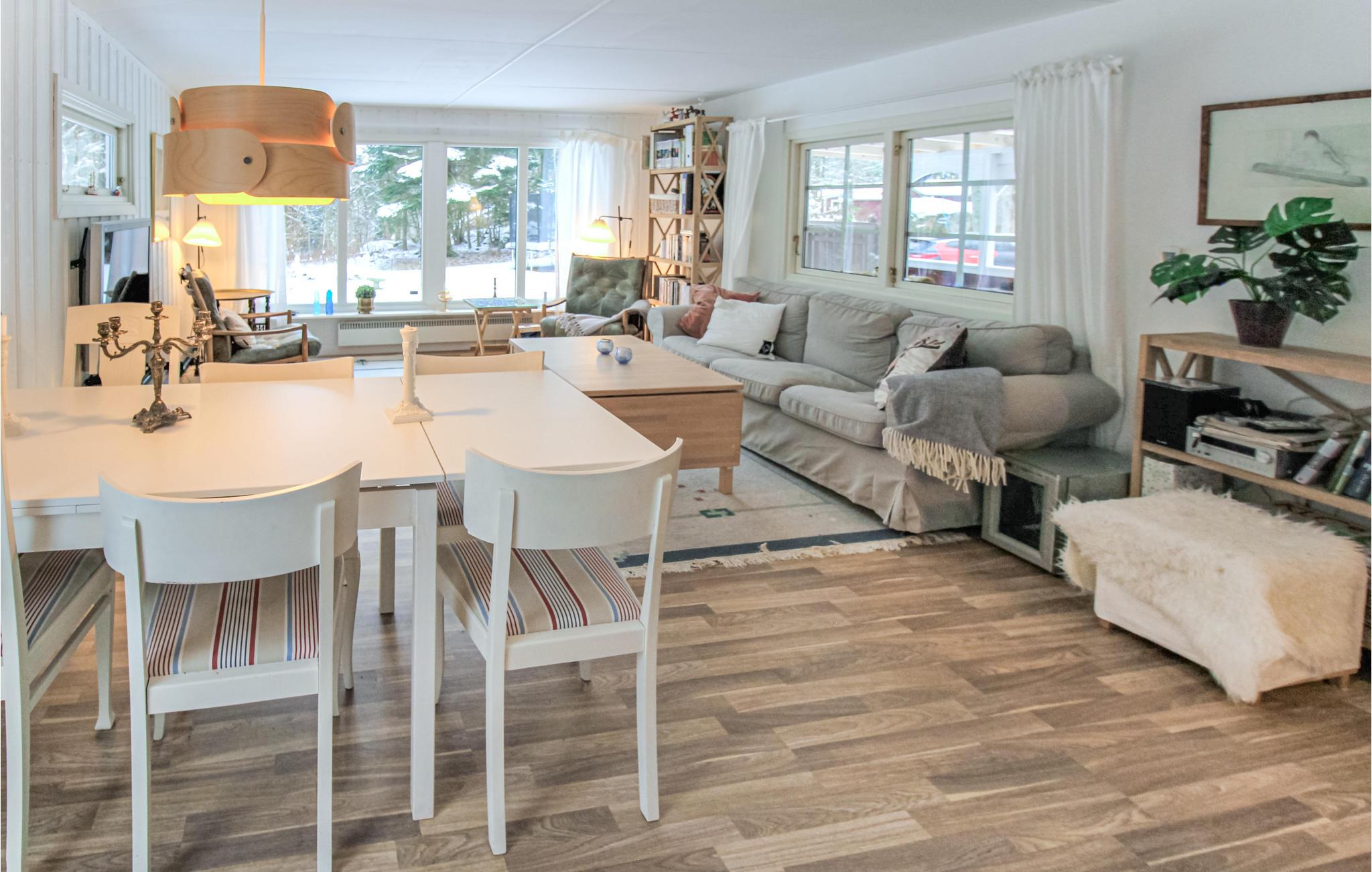 Friluftsmennesker vil føle sig hjemme i dette skønne feriehus beliggende i skoven fra første dag. Med lidt held kan I oven i købet spotte elge fra stuen i skumringen. De lyse værelser med deres indbydende træpaneler og smukke trægulve har smagfulde, lyse møbler og store vinduer. Find jer til rette i denne stilfulde atmosfære, tag en bog fra hylden og slap af i sofaen, mens I lytter til den hyggelige knitren af ??flammerne i brændeovnen.