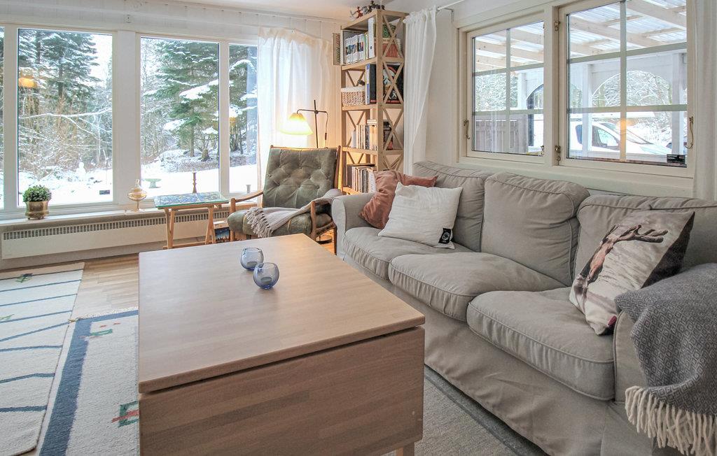 Alle, der elsker frisk luft og smuk natur, vil føle sig hjemme fra dag ét i dette feriehus, som har en smuk beliggenhed i et skovområde. De lyse lokaler, som får et særligt hjemligt udtryk af træbeklædningen på væggene og smukke trægulve, fortryller med smagfuld, lys indretning og store vinduespartier, hvorigennem man kan nyde en vidunderlig udsigt over skoven i opholdsrummet. Find jer godt til rette her med familien i en stilfuld stemning, snup en bog fra hylden og slap af i sofaen eller tilbring hyggelige aftener i godt selskab med flammernes hyggelige knitren i brændeovnen.