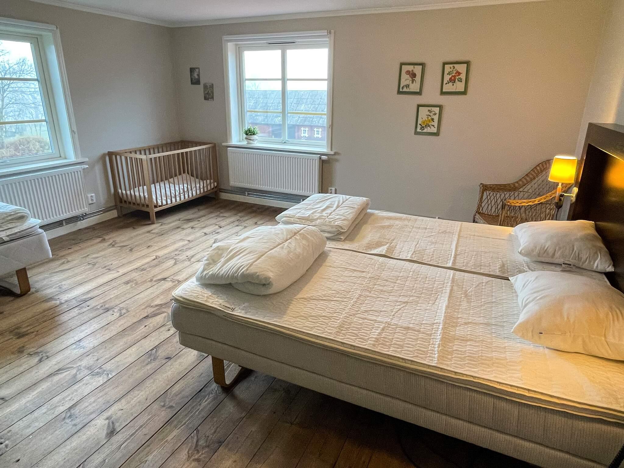 Perfekt boende att dela med flera familjer, släkt och vänner eller varför inte en Kickoff med jobbet. För den fiskeintresserade finns tre sjöar med en båt i varje sjö att använda. En av sjöarna, alldeles nedanför huset har brygga och barnvänlig sandstrand. Det finns metspö och ett par vuxencyklar att låna. Den stora altanen med sjöutsikt inbjuder hela sällskapet till trevliga gemensamma måltider i anslutning till grillplats. Husets alla rum är mycket rymliga med anor från 1800-talet, vilket ägaren har gjort synligt i sitt varsamma renoveringsarbete. De stora gräsytorna runtom huset inbjuder till aktivitet som kubb och krocket. Oändliga promenader i skog med svamp- och bärplockning ger avkoppling och välbehövlig återhämtning under alla årstider.