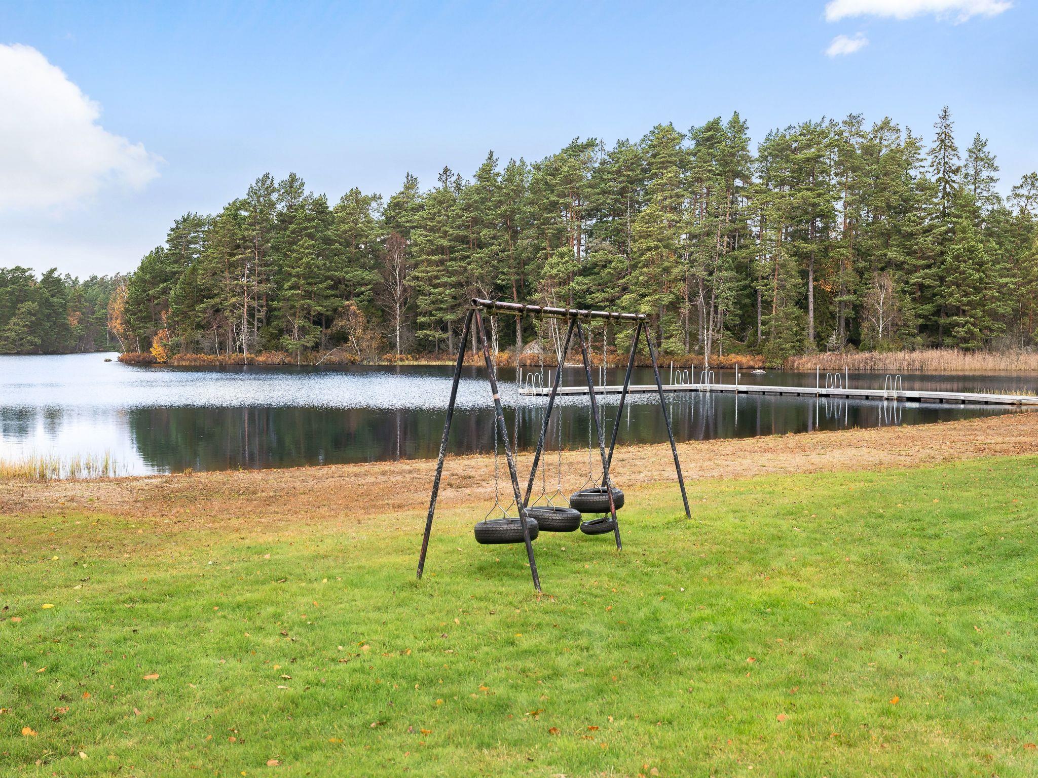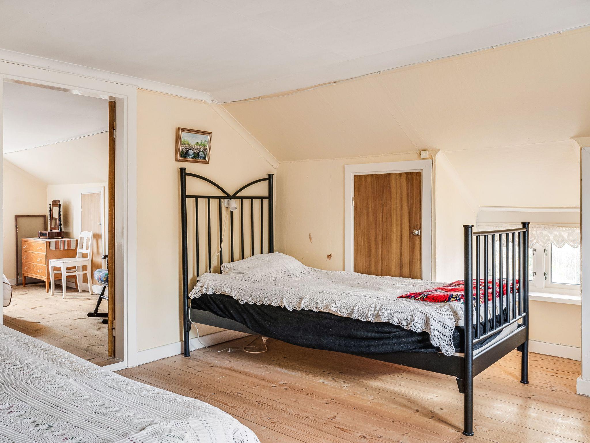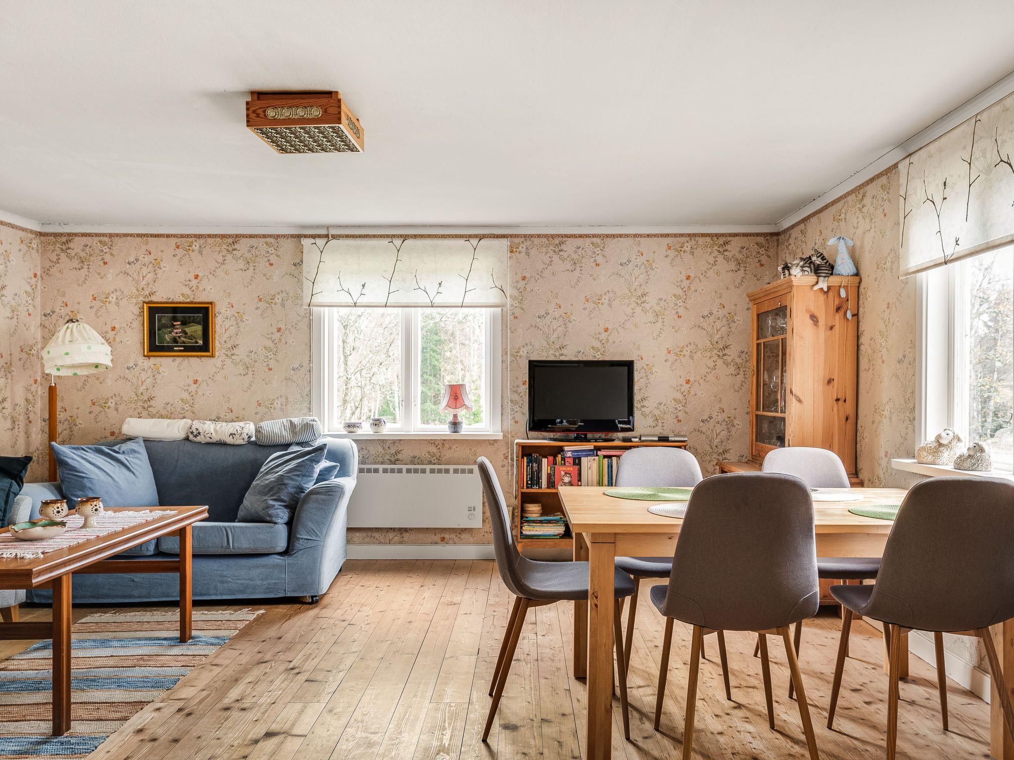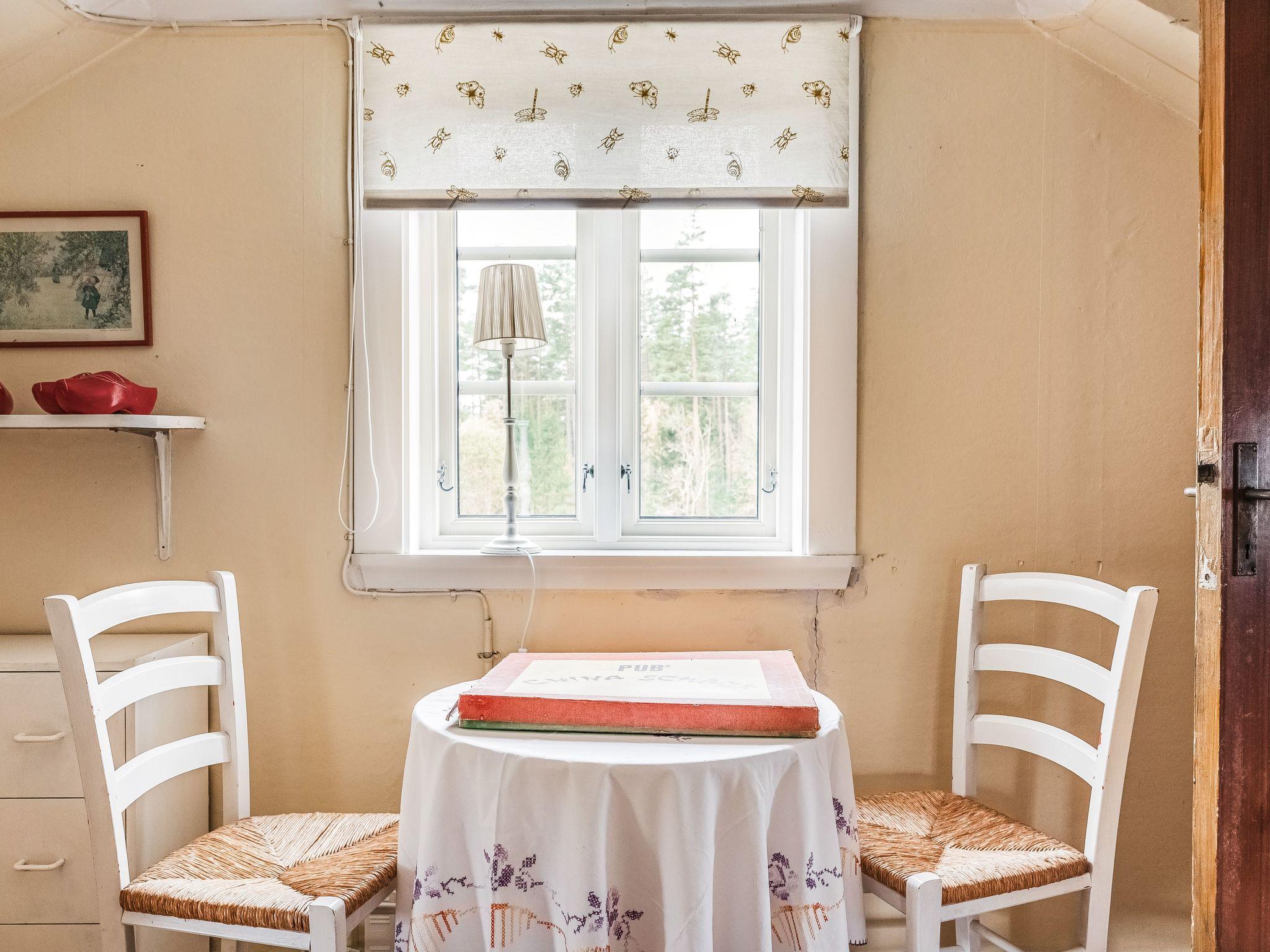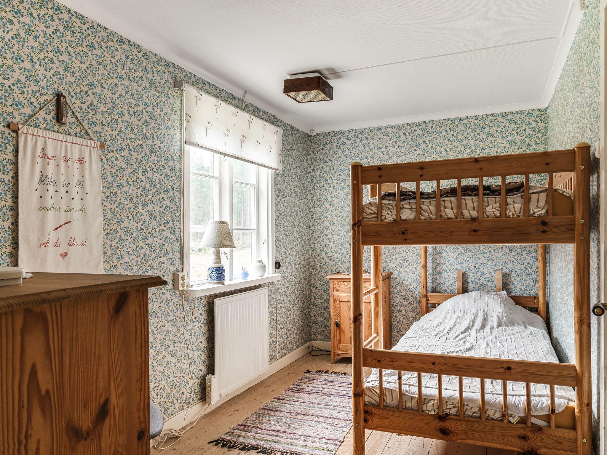 "Mjuamåla", 3-room house 78 m2 on 2 levels. Bright, practical furnishings: living/dining room with dining table, satellite TV, CD-player and tiled stove. 1 open room with 1 x 2 bunk beds (90 cm, length 200 cm). Kitchen (3 hot plates, oven, toaster, kettle, microwave, freezer, electric coffee machine) with Scandinavian wood stove (only for decoration). Shower/WC. Electric heating. Upper floor: 1 room with 1 double bed (2 x 90 cm, length 200 cm). Entrance hall with 2 beds (90 cm, length 200 cm). Wooden floors. Terrace furniture, barbecue (portable), sitting area. Facilities: washing machine, children's high chair, baby cot. Please note: non-smoking house. Smoke alarm, fire extinguisher. Freezer approx. 60 l.