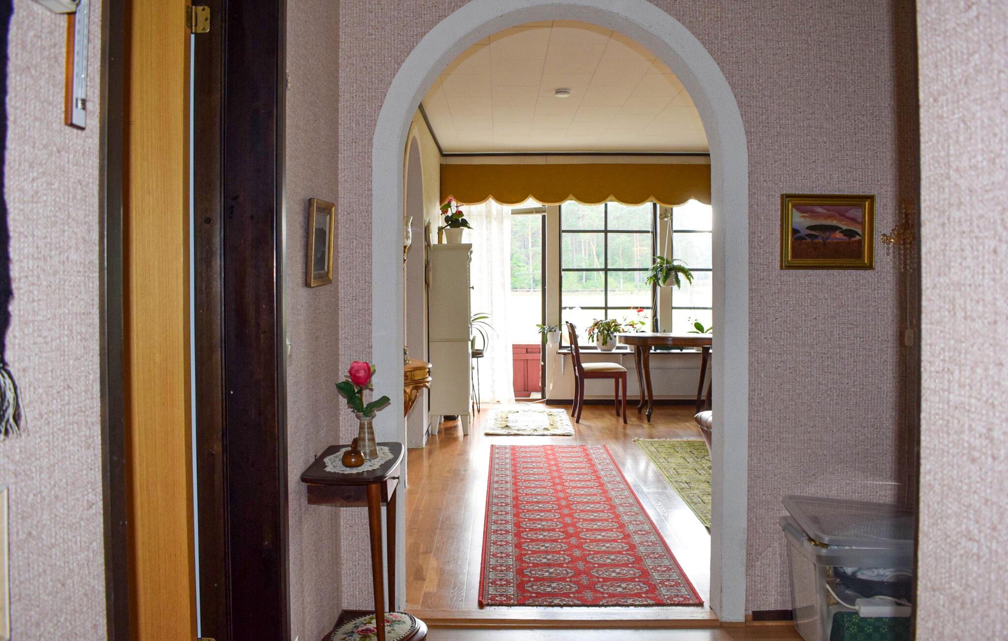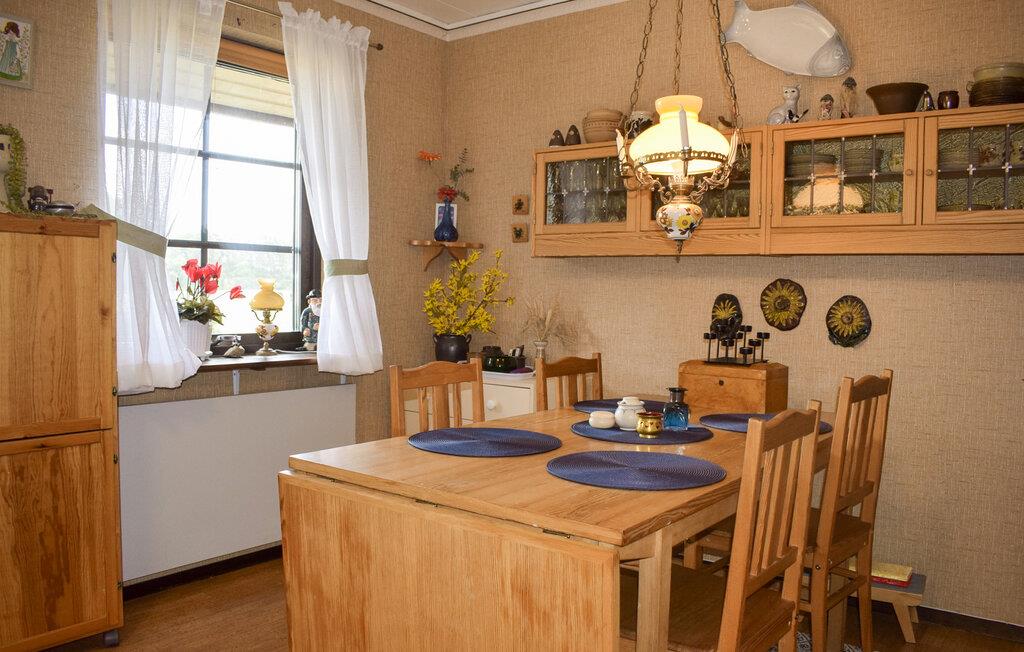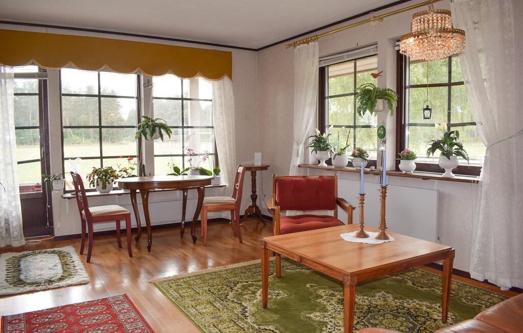 Dette rummelige feriehus byder jer velkommen med en hjemlig atmosfære og tilbyder et komfortabelt tilflugtssted, mens I udforsker regionens natur og kultur på dejlige udflugter. Dæk op til nærende måltider ved det indbydende spisebord, planlæg jeres aktiviteter over harmoniske måltider, krøl jer sammen i sofaen efter en lang dag eller brug tid på familien til en spilleaften.