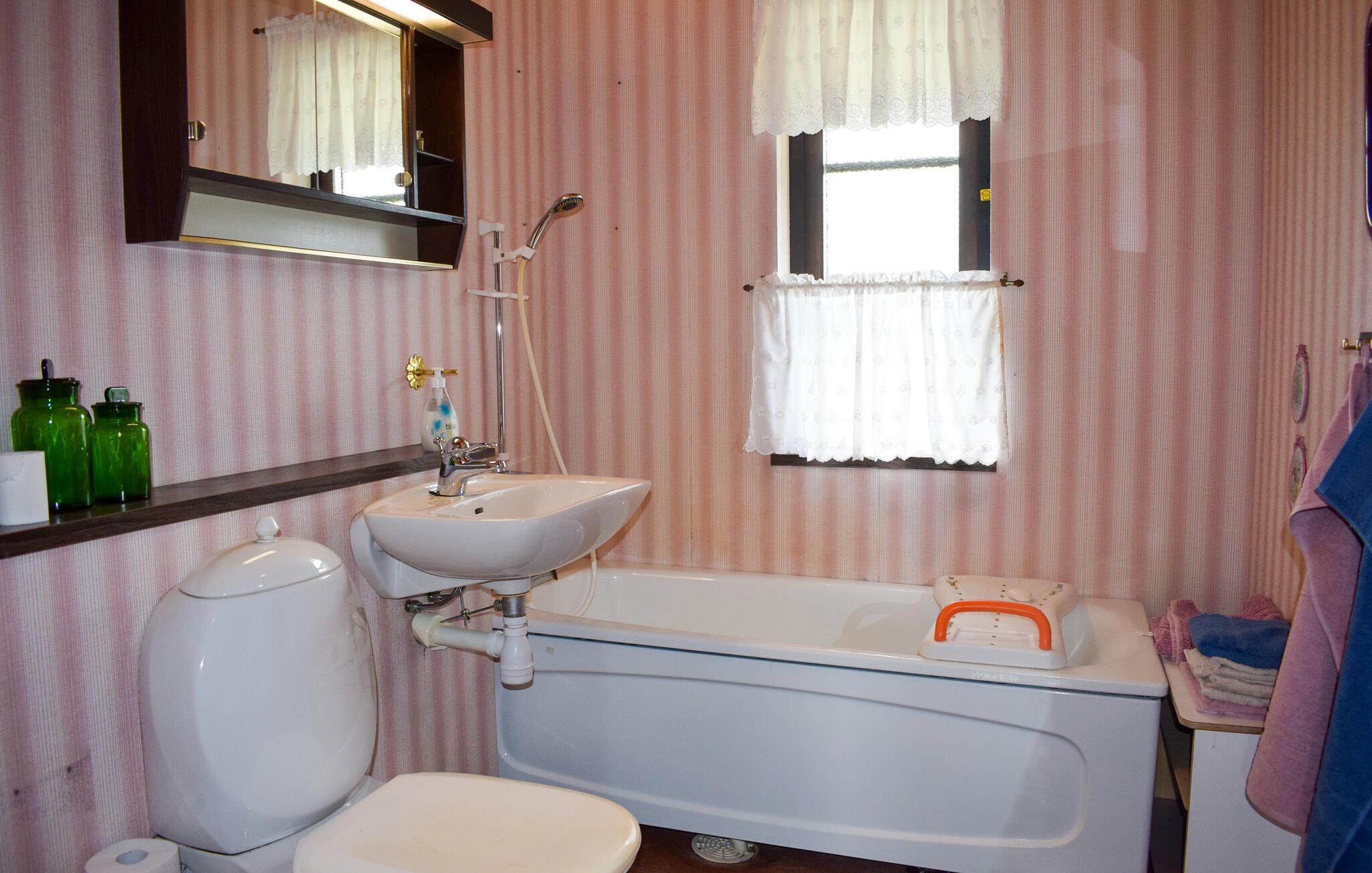 Badeværelse (nr. 1) - WC. Varmt og koldt vand. Håndbruser og badekar