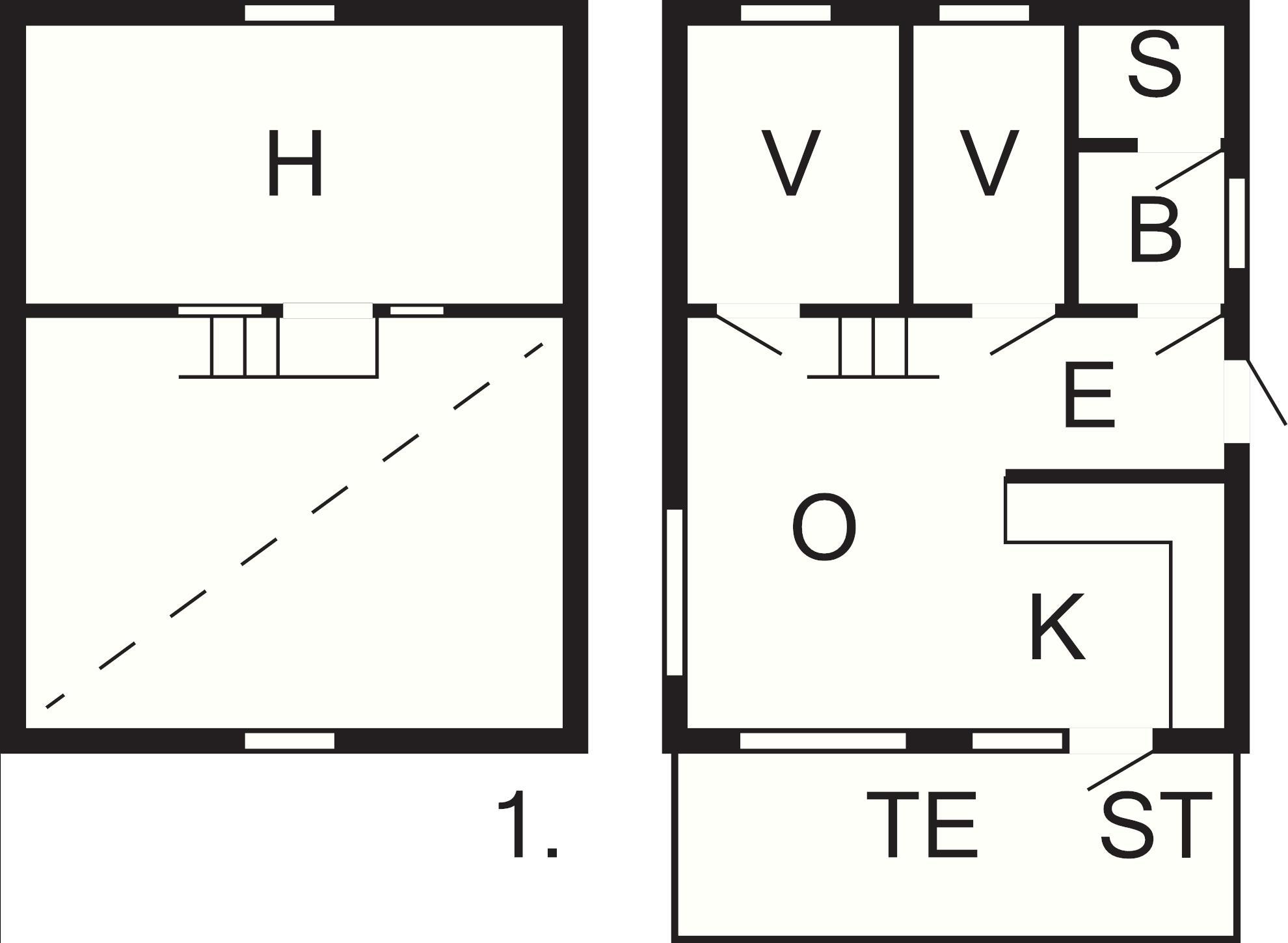 1 Opholdsstue: 16 m2, brændeovn, radio, cd-afspiller, tv, parabol