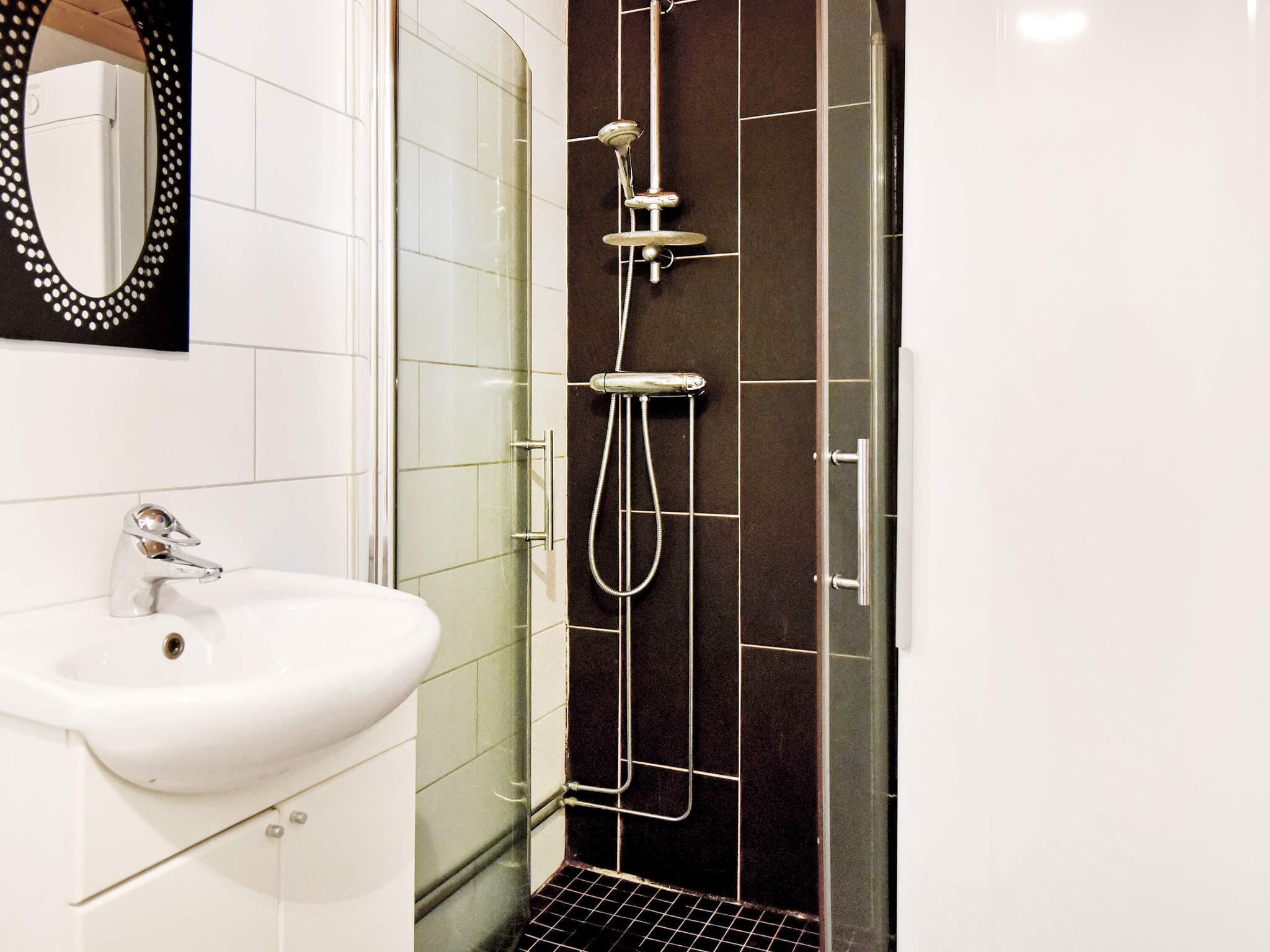 Bad/wc: Tørreskab, wc, håndvask, bruser