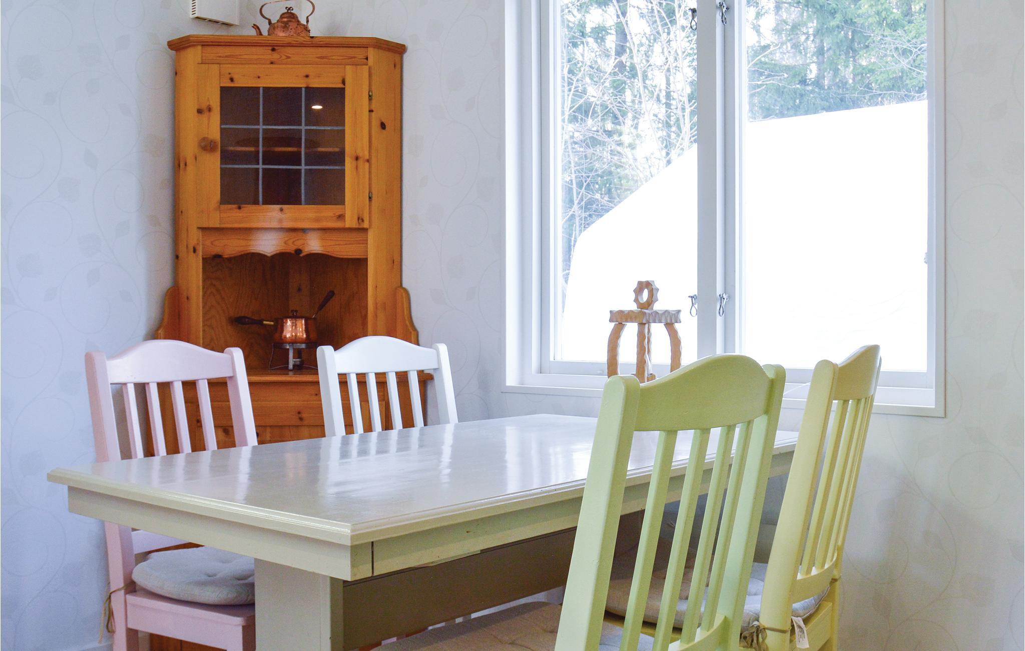 Tilbring en afslappende tid i dette enkle, men funktionelt indrettede feriehus på Ingarö. Boligen ligger på en fællesgrund med boligejernes huse. Der er også bistader på stedet, så I kan opleve naturen tæt på. En brændeovn i stuen giver behagelig varme på kølige dage. Tilbered en lækker morgenmad i køkkenet om morgenen, tag derefter plads ved det hyggelige spisebord og nyd udsigten gennem køkkenvinduerne.