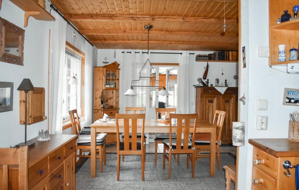 Velkommen til dette skønne træhus, der ligger midt det grønne på en stor grund, og hvor I får en charmerende base for årets familieferie. Indretningen fremtræder pænt og rustikt med kærlige detaljer i udsmykningen, der giver det indre et hjemligt strejf og gør det nemt at slappe af med det samme, I ankommer. Hvis vejret bider lidt fra sig, kan I tænde op i brændeovnen, og hvis I skal varmes endnu mere igennem, kan I forkæle jer selv med en lækker svedetur i saunaen efter aftensmaden.