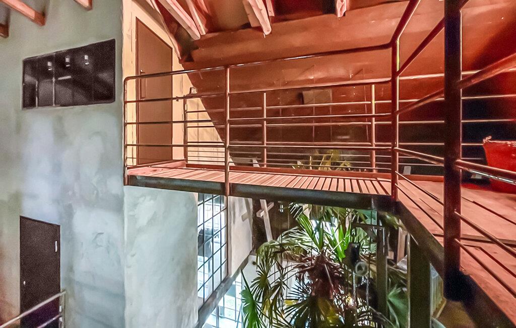 En arkitektonisk designet ombygning af en traditionel lade, dette unikke feriehus tilbyder en atmosfære, der kombinerer moderne design og naturlige materialer. Her venter et gennemtænkt rumkoncept med åbent design, højt til loftet og masser af lysindfald. Lad jer inspirere af den specielle atmosfære indeni. Slap af i det rummelige orangeriområde med ægte daddelpalmer eller gør jer godt tilpas i det stilfulde musikrum. Nyd måltider sammen i det moderne spisekøkken. Takket være den vellykkede kombination af beton, træ og glas skabes et helt specielt, stille tilbagetog.