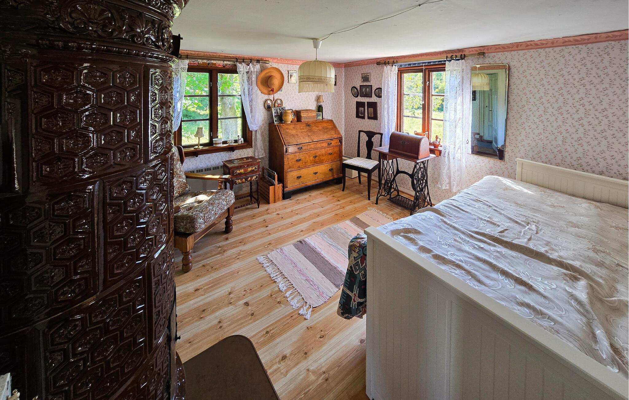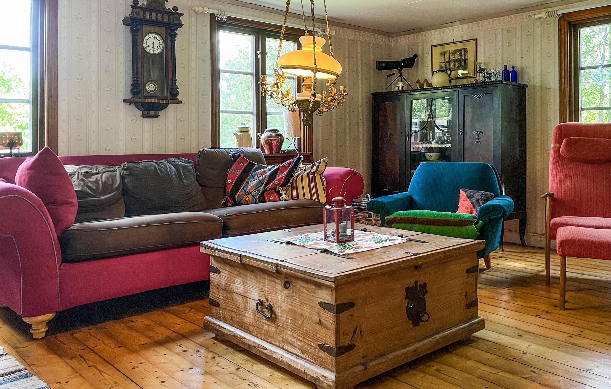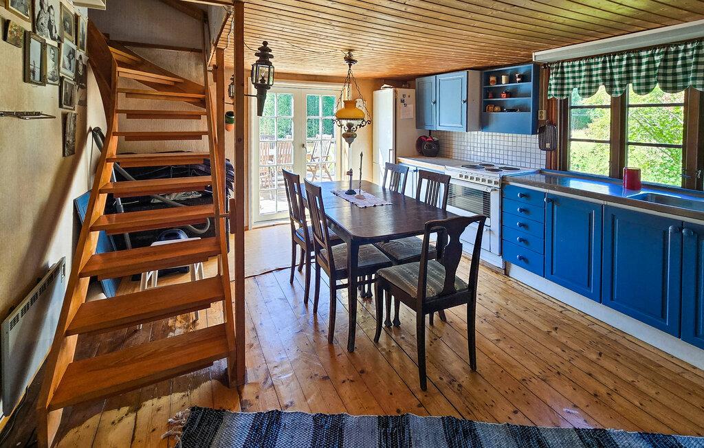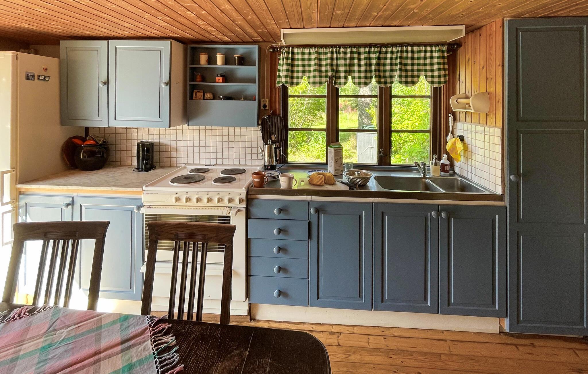 Langt væk fra hverdagen og omgivet af frodigt grønt, byder dette fortryllende feriehus jer velkommen og giver jer et fredeligt tilflugtssted for afslappende dage i harmoni med naturen. Lad udsigten over haven inspirere jer, mens I laver mad og glæd jer til hyggelige spilleaftener og afslappende læsestunder i den kærligt møblerede stue, mens den norske brændeovn sørger for hyggelig varme.