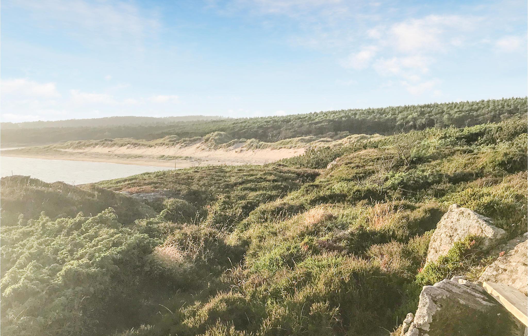 Grunden er indbydende og hyggelig, og her kan I enten lege eller bare slappe af alt efter humør. For at komme til havet, skal I gå ad en hyggelig sti ca. 1 km til kysten, hvor lange sandstrande og badebyer venter jer. I vintermånedernekan det også anbefales at trække i det varme tøj og gå en tur langs havet for at observere dyrelivet, opleve dagens skiftende lys eller bare få en dejlig og forfriskende gåtur.