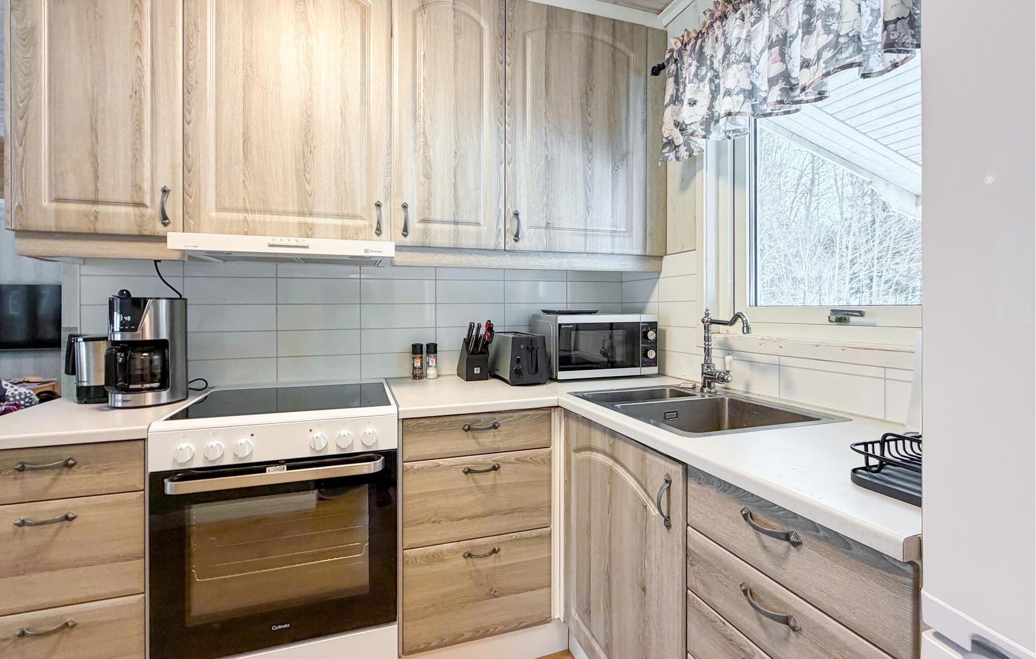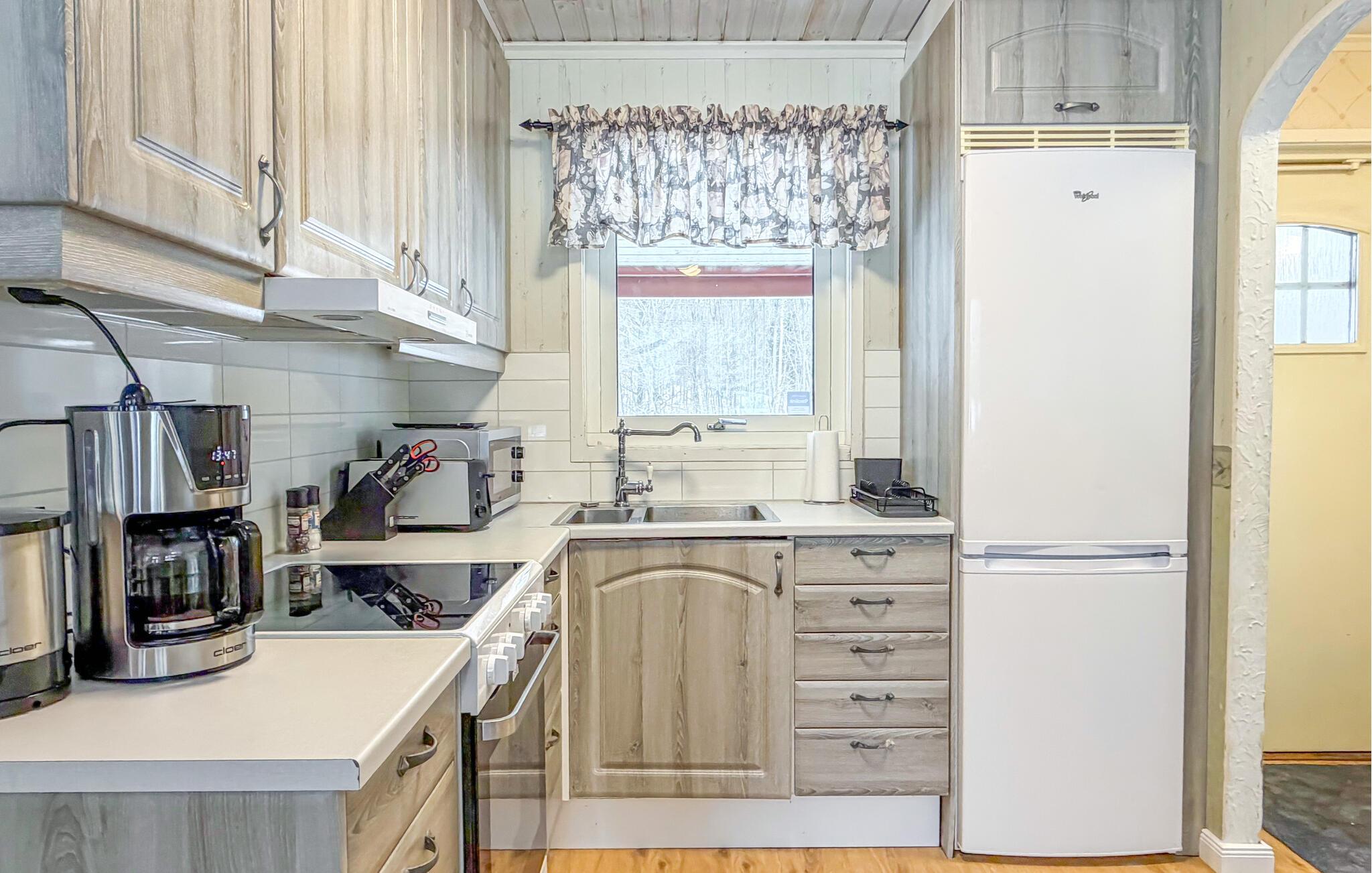 Dette hus er ikke kun idyllisk beliggende, men tilbyder også en fantastisk udsigt over vandet. Nyd den smukke udsigt over naturen, mens I slapper af i sofaen, nipper til kaffe og snakker. Tilbered lækre måltider i køkkenet og server dem ved det store spisebord med et glas vin.