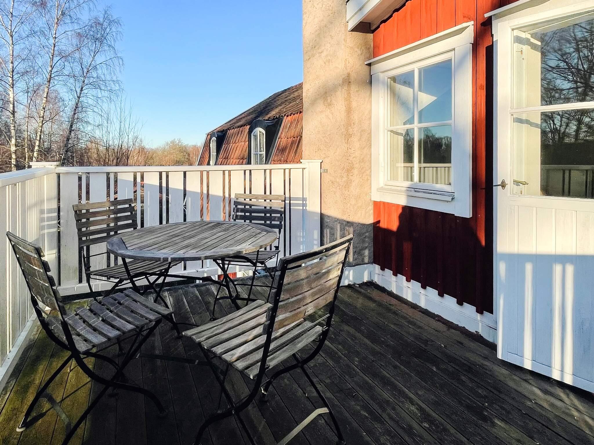 Huset har ett vackert inglasat rum där du kan njuta av den härliga atmosfären och den fina utsikten. Här kan du öppna upp mot den trevliga uteplatsen. Köket är öppet med stora vardagsrum där det finns ett stort matbord framför den vackra kakelugnen. Vardagsrummet ligger på övervåningen med tillgång till den trevliga balkongen med utemöbler. I vardagsrummet finns lyxiga bekväma soffor där du kan luta dig tillbaka framför TV:n eller den vackra kaminen. Ta med egen ved om du vill ha en brasa i kaminen eller kakelugnen.