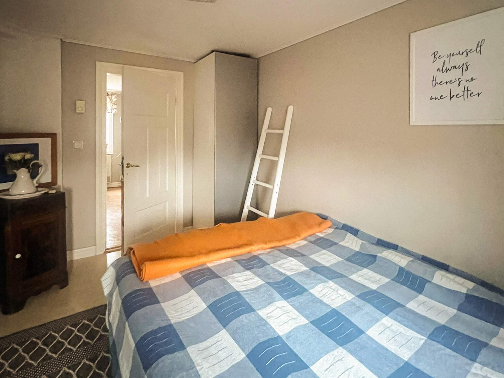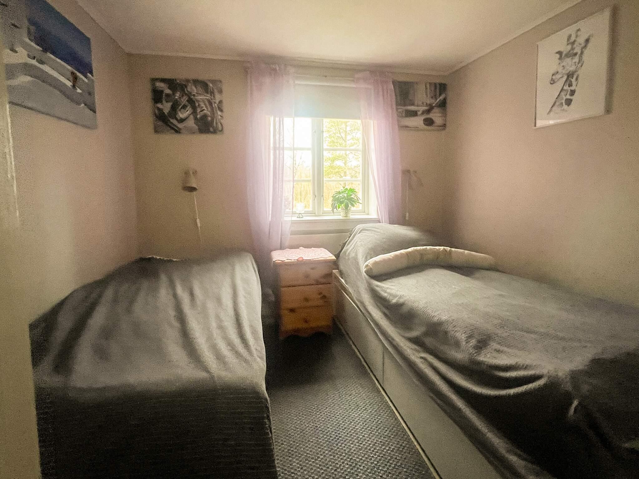 Stugan har två sovrum, ett med två enkelsängar och ett med en 140cm säng. Det finns ett vardagsrum, med TV samt matsalsbord. Ett rymligt kök med en liten sittplats även där och ett badrum med dusch. Sänglinne ingår i hyran.
