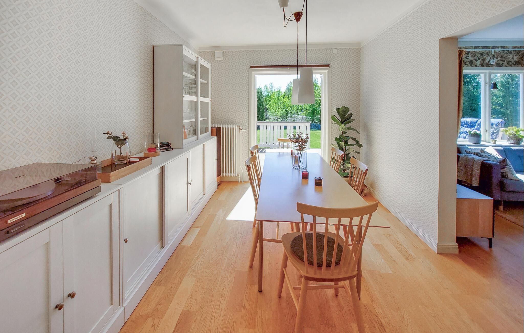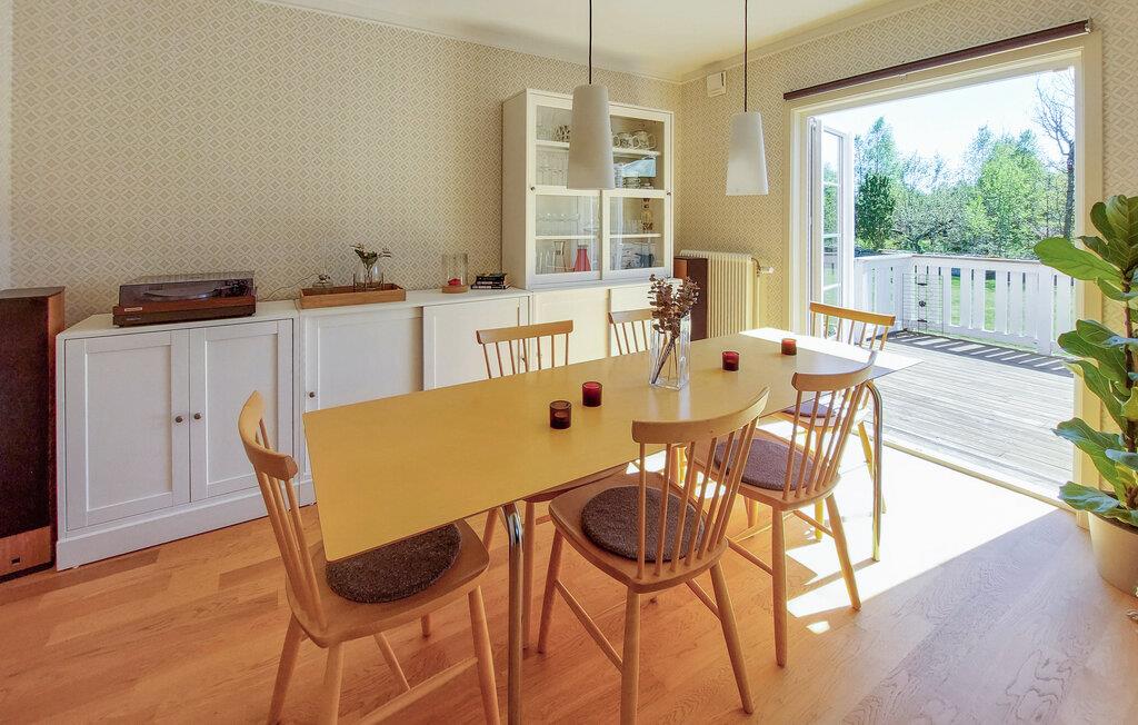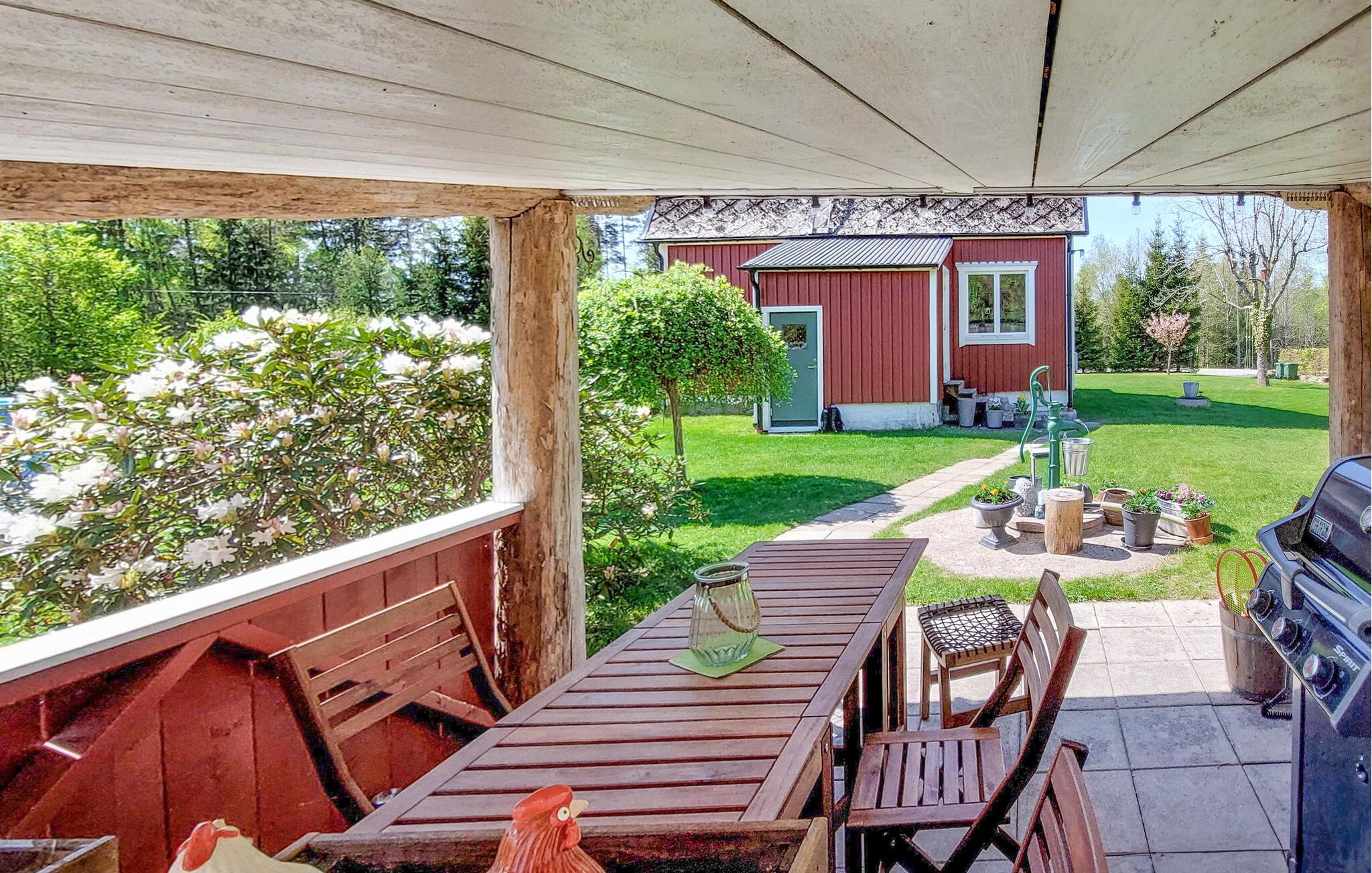 I dette charmerende, røde træhus får I en idyllisk ramme om årets ferie med familien. Huset ligger i dejlige, grønne omgivelser, og indvendigt emmer det af hygge med farverige tapeter, komfortable møbler og moderne udstyr, der er med til at gøre jeres ophold aldeles bekymringsfrit fra det øjeblik, I stiller kufferterne. Brug huset som base for mange skønne naturoplevelser og rund en begivenhedsrig dag af med et lækkert måltid mad i køkkenet, inden I trækker ind i den bløde sofa ved brændeovnen og smider en god film på tv'et.