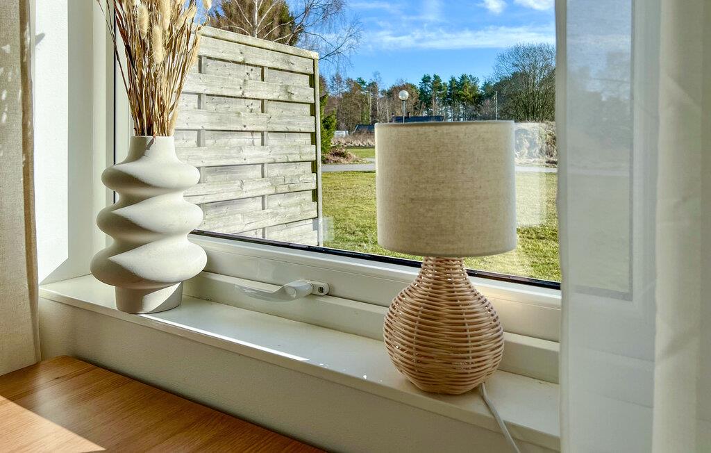 Dette feriehus på den smukke Østersøø Öland byder på plads til en stor familie. I kan føle jer godt tilpas her når som helst på året. Slap af i den indbydende stue med et behageligt sofahjørne. Det åbne køkken er funktionelt udstyret og giver plads til fælles måltider ved det smukke spisebord i træ. De lyse rum får huset til at fremstå venligt og indbydende.