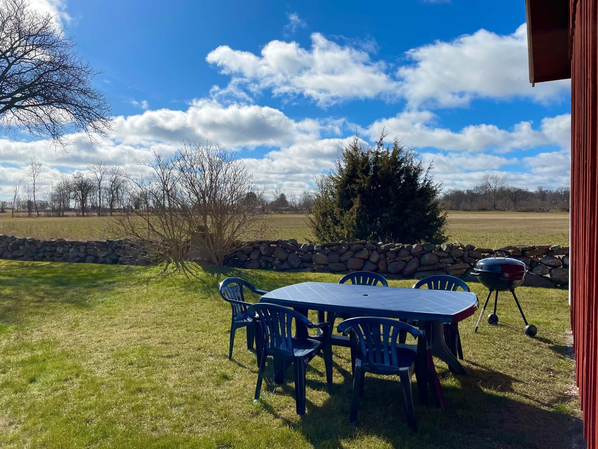 Huset ligger på samma tomt som ett annat hus, men då ni hyr huset är husägarna inte på plats, vilket gör att ni förfogar över trädgården själva.