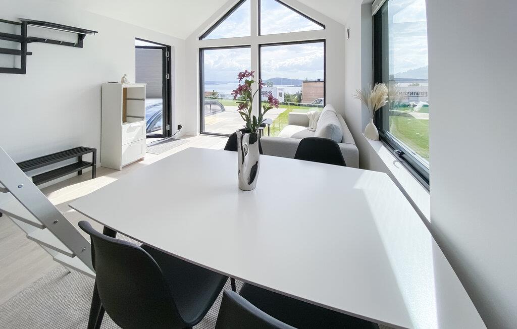 Nyd en moderne ferie i dette stilfulde feriehus i Lanesund. jeres sommerhus byder på komfort og en fantastisk udsigt over havet. Det nybyggede gæstehus imponerer med store panoramavinduer, der slipper masser af lys ind og giver udsigt til vandet. Start dagen med en afslappet morgenmad ved spisebordet og nyd den elegante ro, som dette hus udstråler. Brug det praktiske køkken til at tilberede jeres måltider, som I kan nyde i spisepladsen eller på terrassen. Det åbne rumdesign giver huset en særlig lethed. Slap af og slap af på terrassen, mens I stirrer på havet. Vil I være aktiv, så gå på opdagelse i det omkringliggende område, da feriehuset ligger tæt på indkøbs- og fritidsmuligheder såsom TORP Shopping Center og Haftsten Resort. Lej en kano, tag en bådtur eller besøg en af de nærliggende golfbaner. Gå en tur gennem Lanesunds charmerende gader, indånd den friske havluft og lad hverdagen bag dig. Vend tilbage til feriehuset om aftenen og nyd komforten og moderne faciliteter.