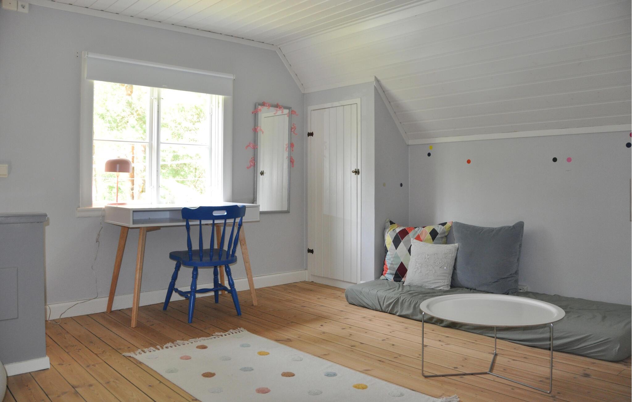 Velkommen til dette idylliske feriehus i Lennartsfors, som med sin charmerende terrasse tilbyder en fantastisk udsigt over søen. De indbydende indendørsområder er smagfuldt indrettet og skaber en varm atmosfære, der inviterer jer til at blive. Her kan I tilbringe afslappende aftener sammen eller lave mad og spise. Den rolige omgivelser sørger for, at I kan nyde naturen i fulde drag. Forestil jer, hvordan I starter morgenen på terrassen med en kop kaffe, mens solen får vandet til at glitre.