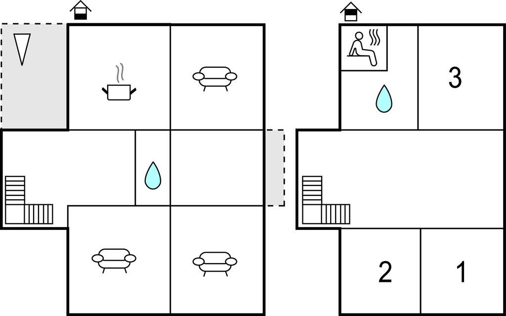 Der er en privat anløbsbro med en robåd og kano, som er en del af denne bolig. Fiskeriet er godt, og svømmemuligheder er tilgængelige ved egen mole og også på et offentligt svømmeområde i nærheden. Huset har 6 senge, som er opdelt i 3 soveværelser. To soveværelser har dobbeltsenge og det ene har enkeltsenge. Køkken og badeværelse og nogle værelser blev renoveret i 2015. Der er et badeværelse med toilet, brusebad og sauna og et lille toilet.