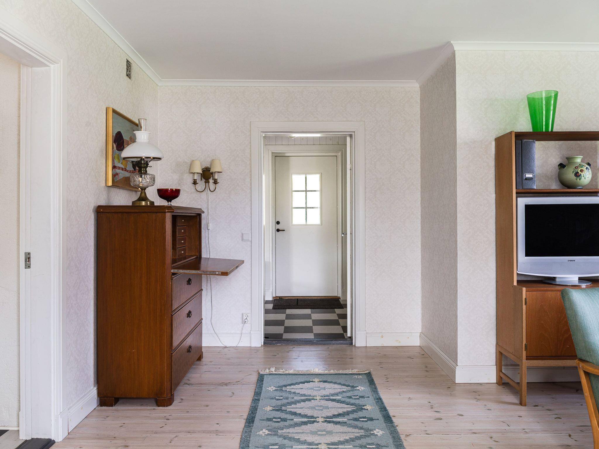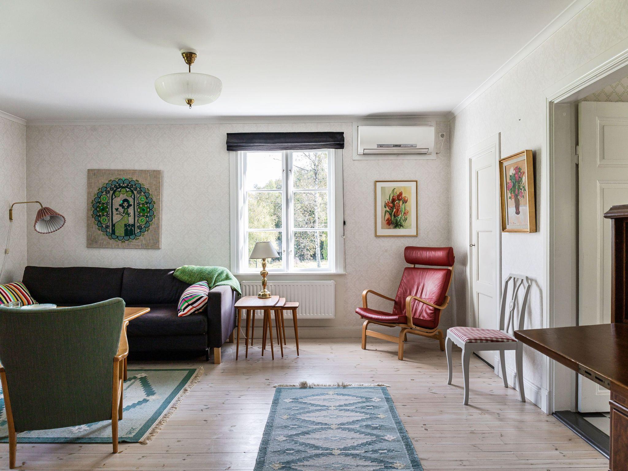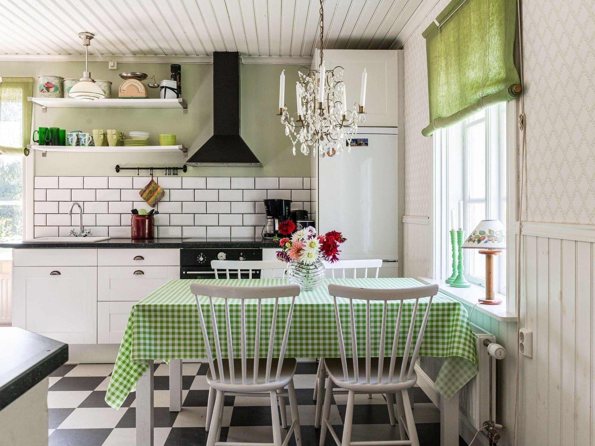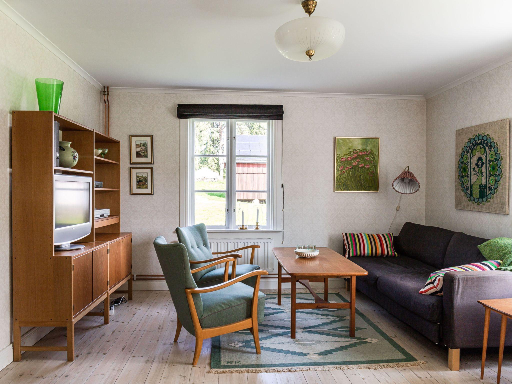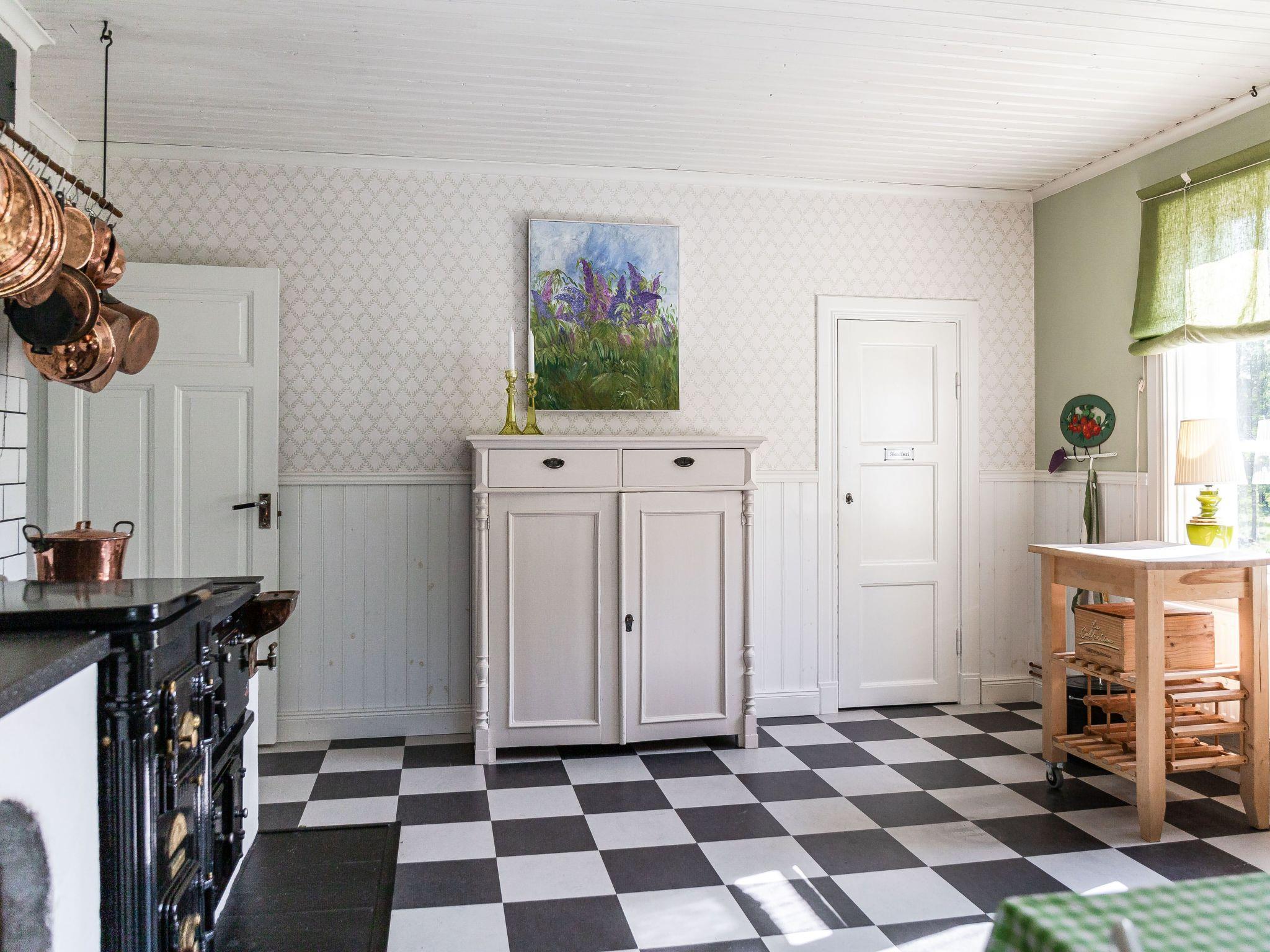 "Långban", 3-room house 90 m2 on 2 levels. Bright, cosy furnishings: living/sleeping room with 1 double sofabed, satellite TV and DVD. Kitchen (4 hot plates, oven, toaster, kettle, microwave, freezer, electric coffee machine) with dining table and wood-burning stove. Shower/WC. Heating. Upper floor: walk-through room with 2 beds. 1 small room with 2 beds. Open dining room. Wooden floors. Facilities: washing machine, children's high chair, baby cot. Please note: non-smoking house. Freezer approx. 90 l. SE06211