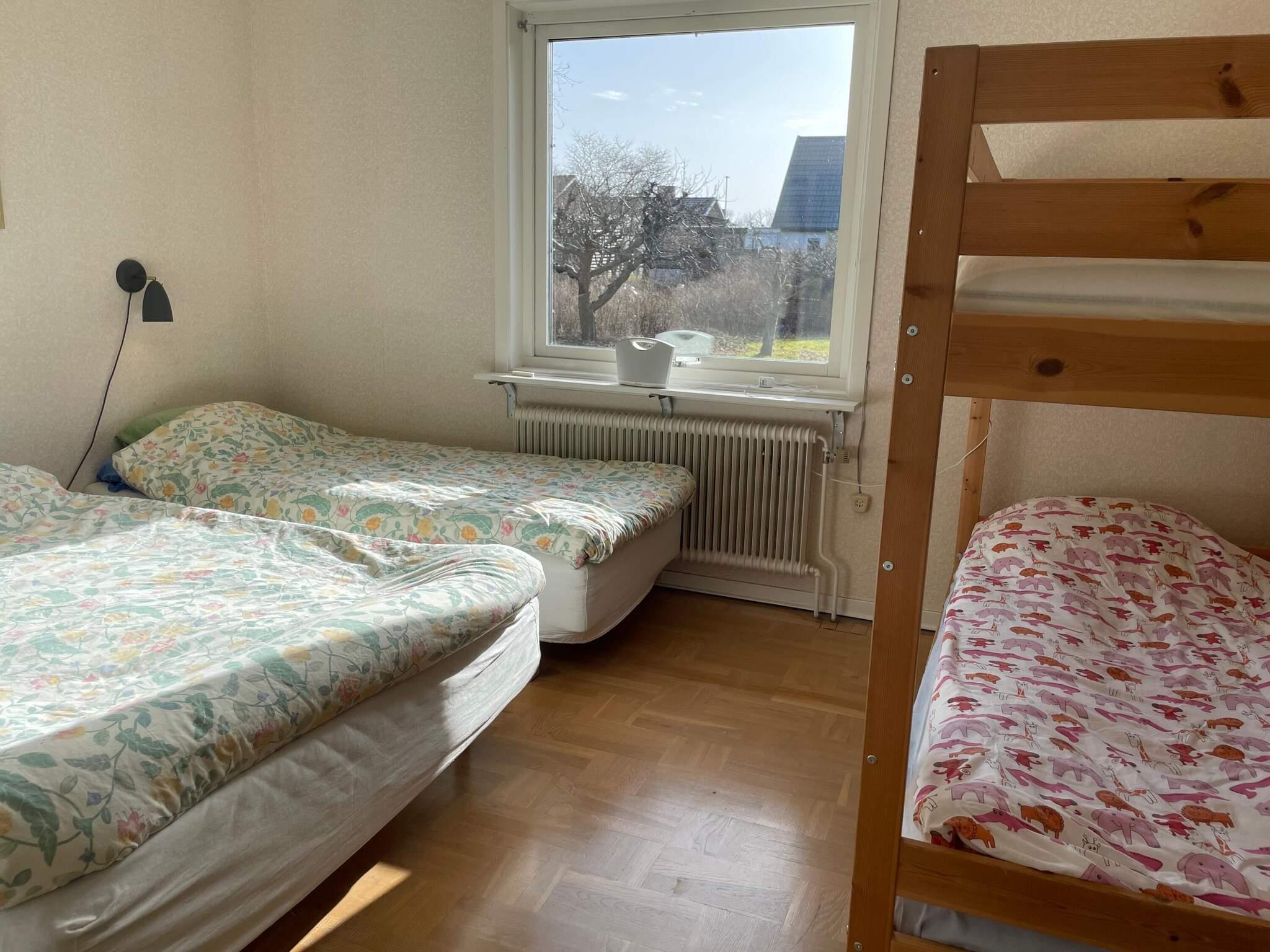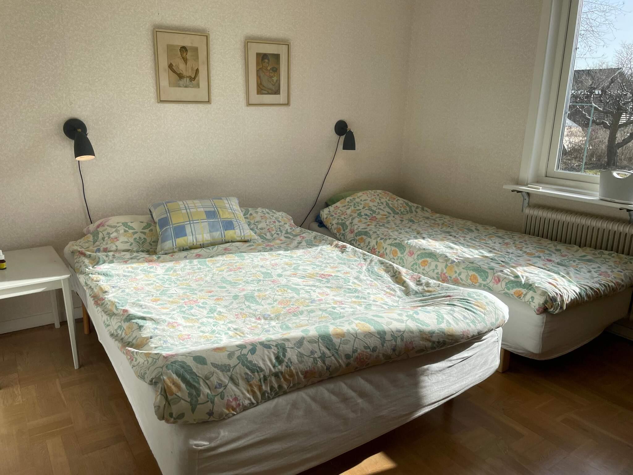 Huset består av två våningar men det är bara första våningen som hyrs ut. (plan 2 är privat) Ni har två stora sovrum, ett med en dubbelsäng och en våningssäng i och det andra en dubbelsäng.