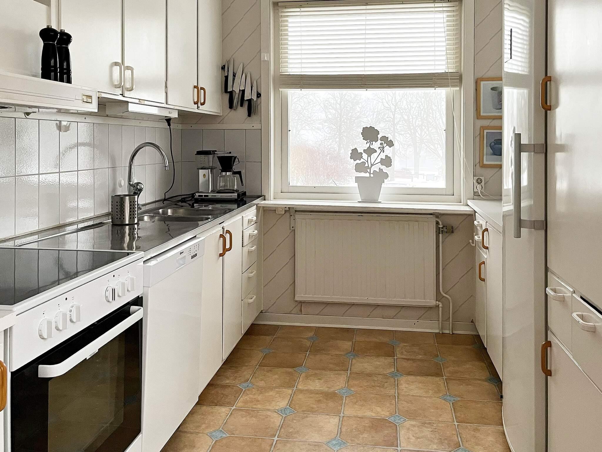Køkken: El-komfur, køle-frys, mikroovn, kaffemaskine, opvaskemask.