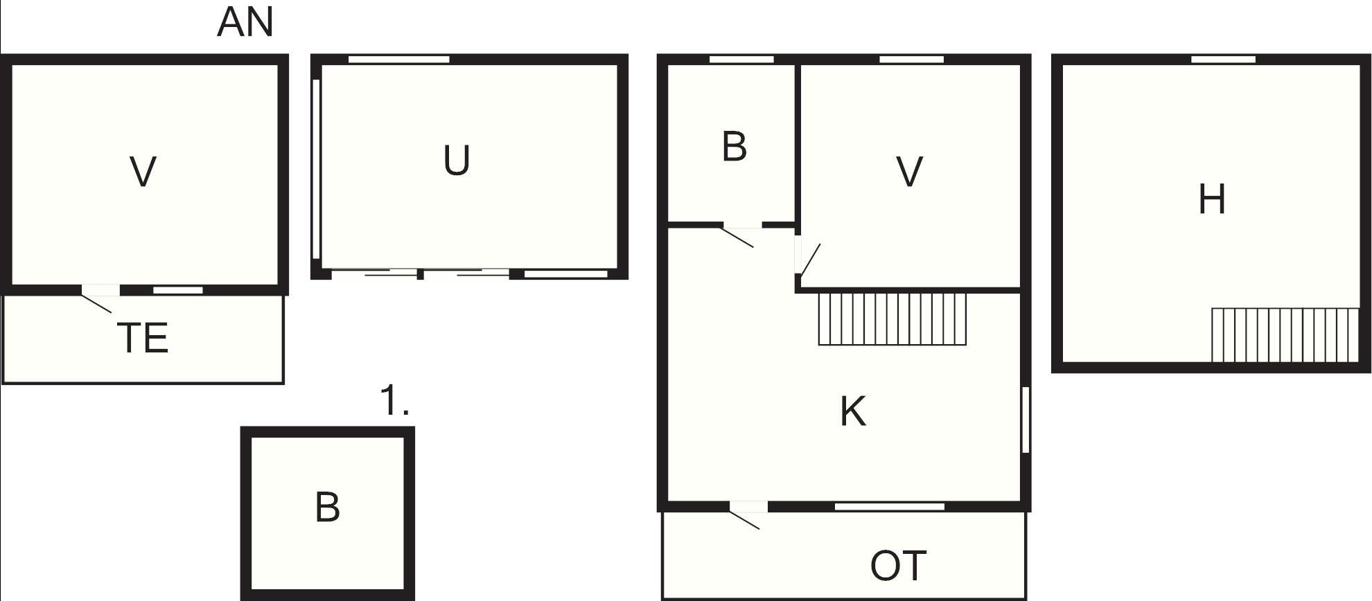Bad/wc: Wc (indg. udefra), håndvask, bruser